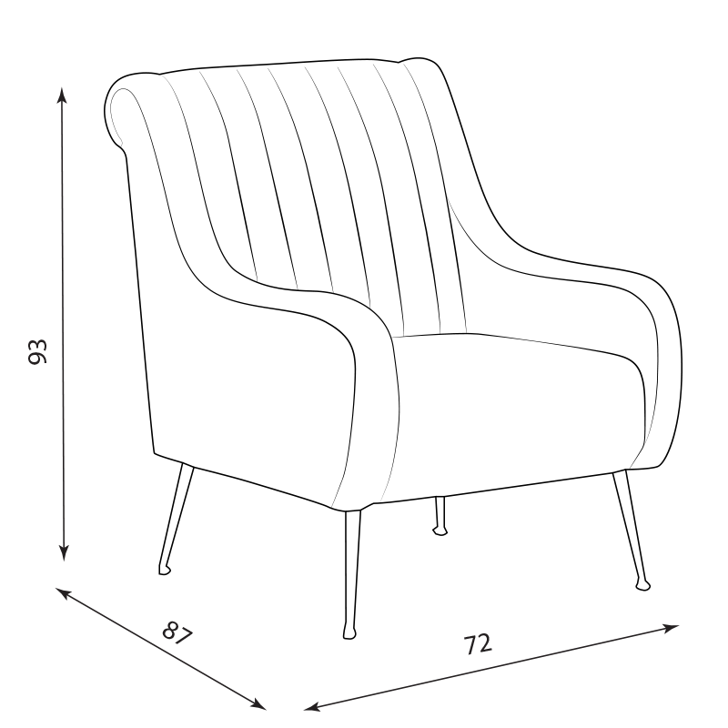 ANITA е стилно кресло с елегантни форми, нежна дамаска и фини крака. Моделът е изработен от здрава конструкция от метал и дърво и пълнеж с покет пружини за максимално удобство. Пълна информация за размерите и характеристиките на модела ще намерите в таблицата в таб/поле "Техническа информация".