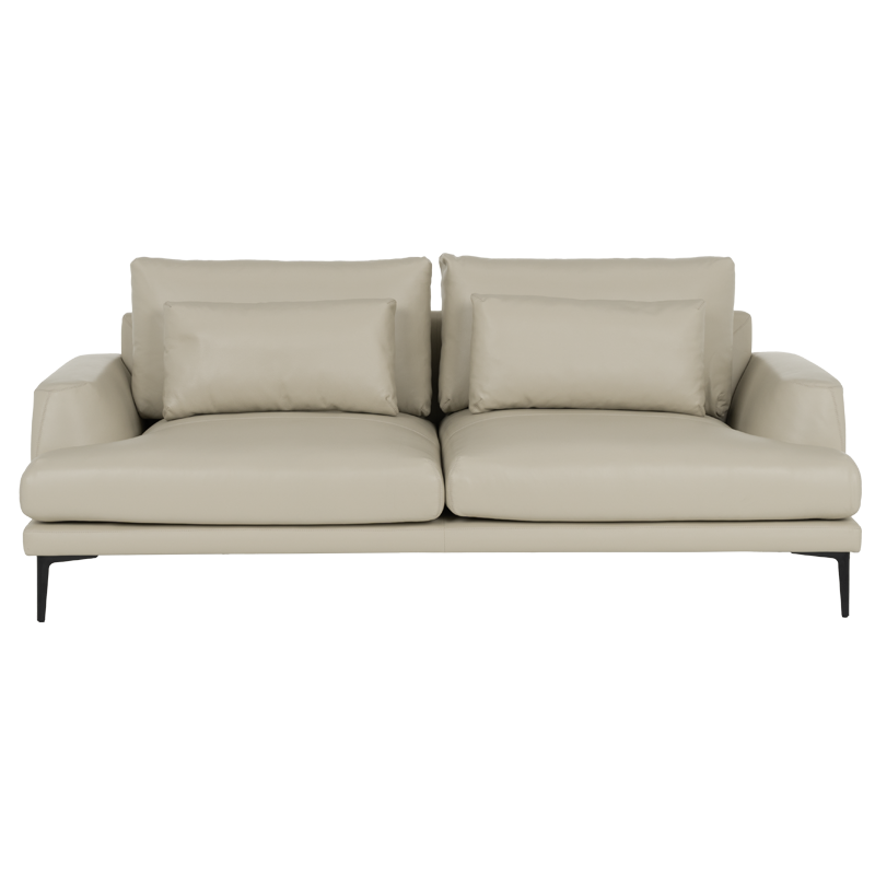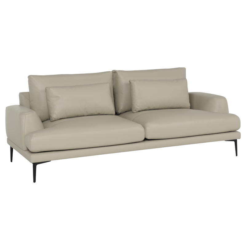 GRASTEN LUX е стилен диван с 3 места. Той е изработен от естествена кожа, здрава конструкция от метал и дърво и елегантни метални крака. Пълнежът от пружини и пенополиуретан осигурява максимален комфорт. С него вашето удобство е гарантирано благодарение на голямата седалка и облегалката с меки възглавници, като получавате и 2 допълнителни декоративни възглавници. Пълна информация за размерите и характеристиките на модела ще намерите в таблицата в таб/поле "Техническа информация".