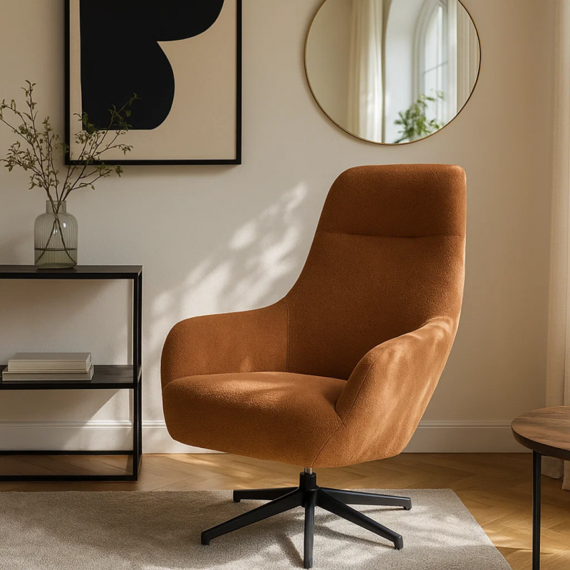 Кресло DANI впечатлява с изчистена форма, мека дамаска и приятна на допир текстура. Конструкцията е стабилна, с прахово боядисани метални крака, а удобната седалка прегръща тялото с приятно усещане за мекота. Въртящата основа с 360° обхват и функцията за люлеене допринасят за максимален релакс. Подходящо е както за модерни, така и за по-класически интериори. Пълна информация за размерите и характеристиките на модела ще намерите в таблицата в таб/поле 'Техническа информация'.