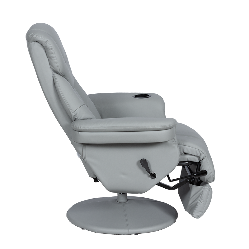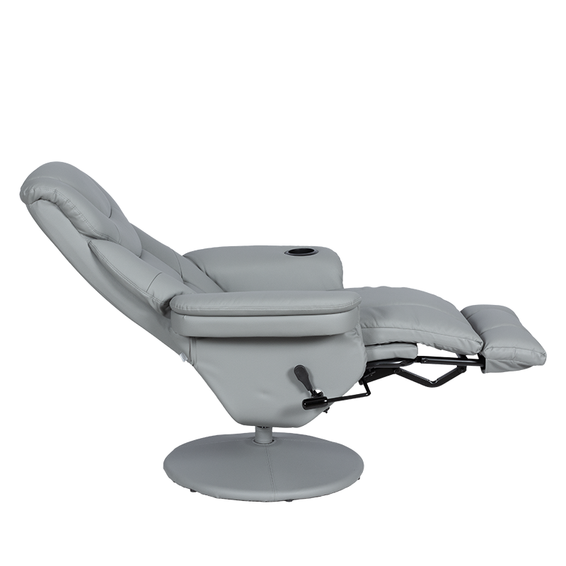 Кресло TIA е създадено за съвършен комфорт и истински моменти на отдих. Изработено от висококачествена еко кожа, моделът разполага с два независими релакс механизма за регулиране на поставката за крака и облегалката – и в тандем разгръщат креслото в почти легнало положение, създадено за безвремие. Вграденият джоб под левия подлакътник побира удобно книга или дистанционно, а вградената поставка за чаша допълва усещането за уют. Здрава метална основа с праховобоядисано покритие, облицована с еко кожа, осигурява стил и стабилност, а 360-градусовото въртене гарантира пълна свобода на движение. Пълна информация за размерите и характеристиките на модела ще намерите в таблицата в таб/поле 'Техническа информация'.