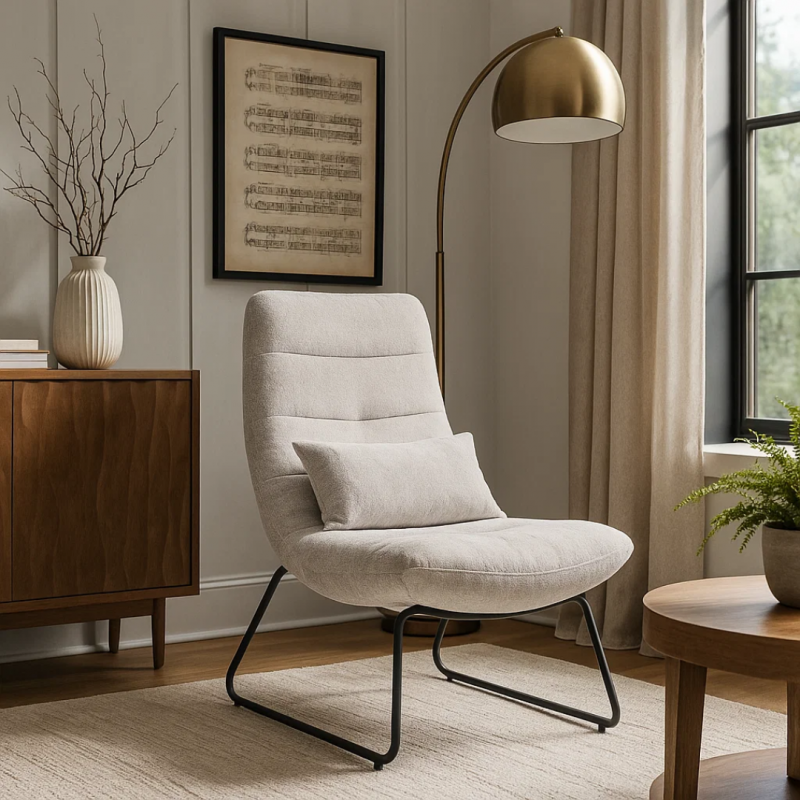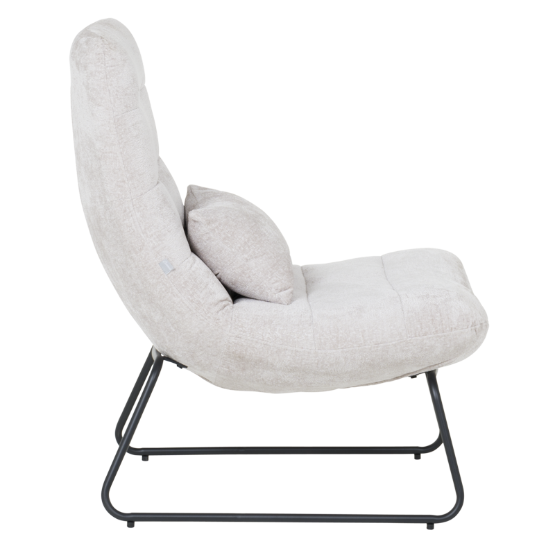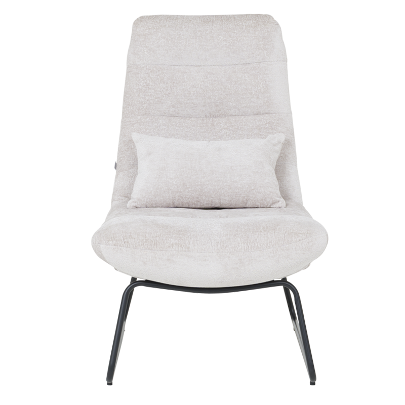 Кресло IRMA впечатлява с модерна визия и изключително комфортна седалка, съчетана с метална основа в елегантен черен цвят. Меката дамаска в бежов тон създава усещане за уют, а включената декоративна възглавничка добавя допълнителна опора и стил. Перфектно допълнение към съвременния интериор, подходящо за всекидневна, кът за четене или спалня. Пълна информация за размерите и характеристиките на модела ще намерите в таблицата в таб/поле "Техническа информация".
