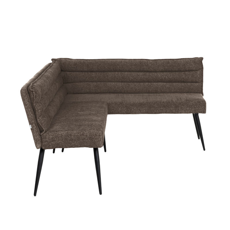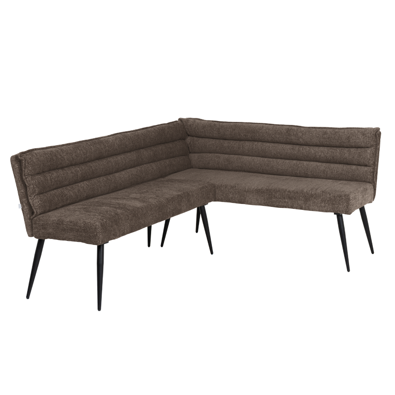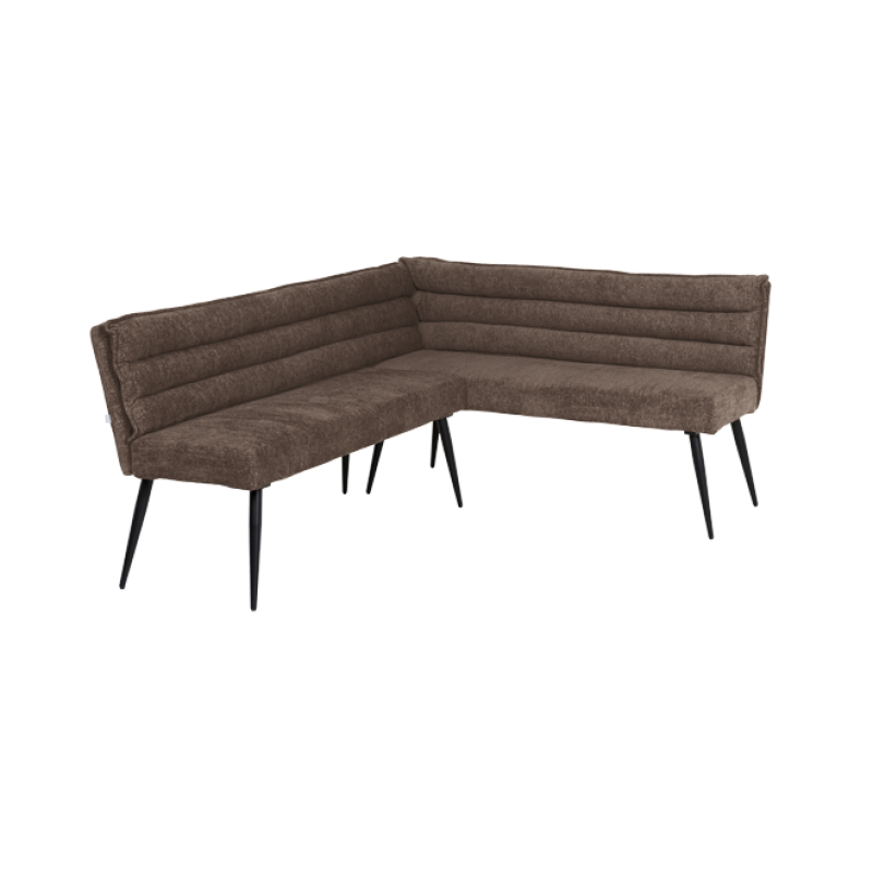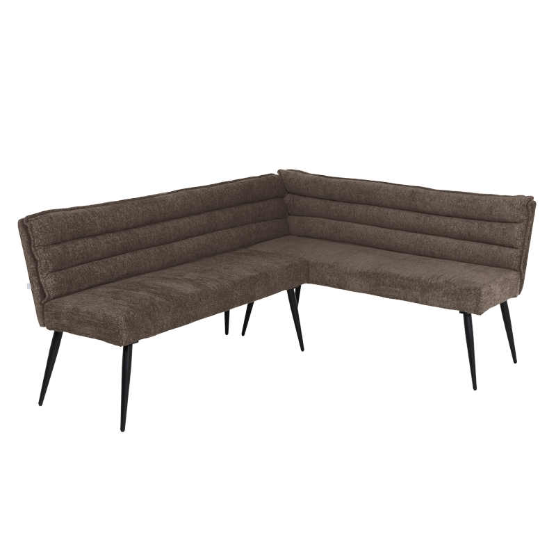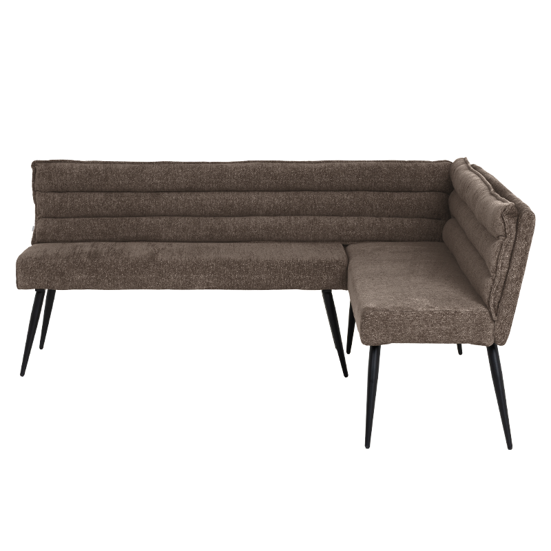 Кухненският ъгъл IKSAN съчетава стил, уют и практичност в едно елегантно решение за трапезарията. Седалката и облегалката са изработени от мека дамаска с пълнеж от полиуретанова пяна и покет пружини, които осигуряват комфорт и стабилна опора при ежедневно ползване. Моделът впечатлява с модерна визия и хоризонтално капитониран дизайн, който допринася за усещане за уют. Здравата основа от праховобоядисан метал в черен цвят гарантира устойчивост и дълготрайност. За да създадете завършена и хармонична трапезна зона, моделът може отлично да се съчетае с кухненска пейка, както и с трапезен стол с подлакътници или модел без подлакътници от същата серия IKSAN. Пълна информация за размерите и характеристиките на модела ще намерите в таблицата в таб/поле „Техническа информация“.