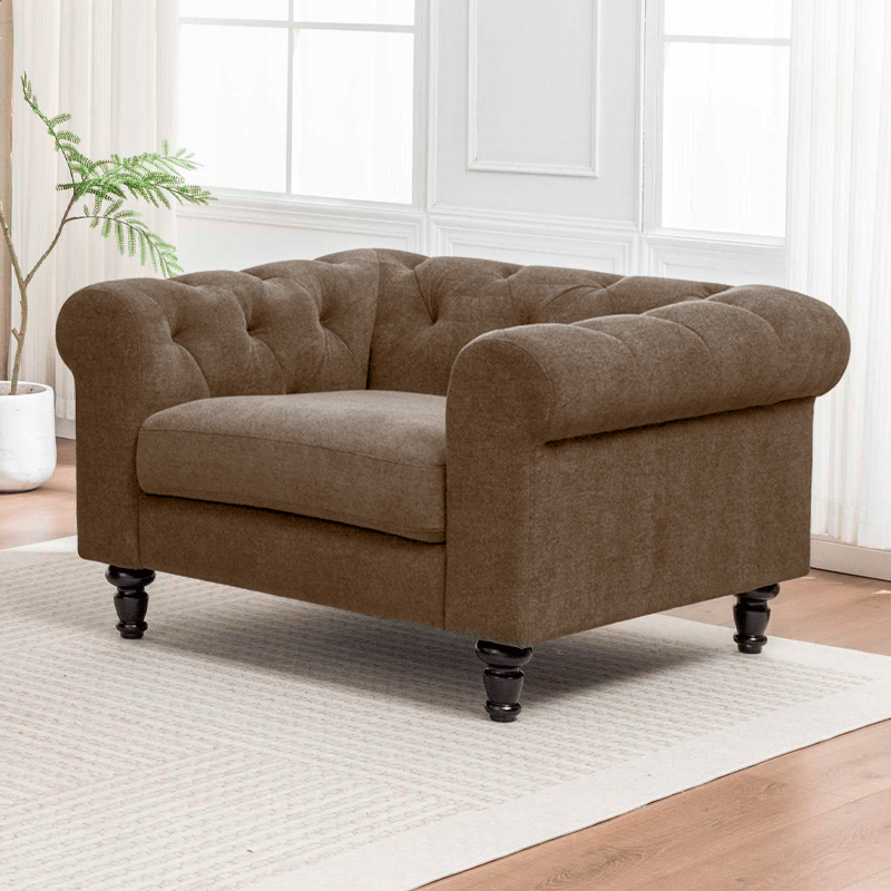 Фотьойл Chester е класическо и елегантно предложение за обзавеждане на дневната, отличаващо се с емблематичен дизайн и високо качество на изработка. Моделът е тапициран с мека дамаска в наситен цвят, която придава изискан вид на интериора. Комфортът при седене е гарантиран от пълнеж от пенополиуретан и покет пружини, които предлагат оптимална опора и мекота. Елегантните тъмни крака завършват визията на модела, превръщайки го в идеален акцент за всеки съвременен или класически дом. Пълна информация за размерите и характеристиките на модела ще намерите в таб/поле "Техническа информация".