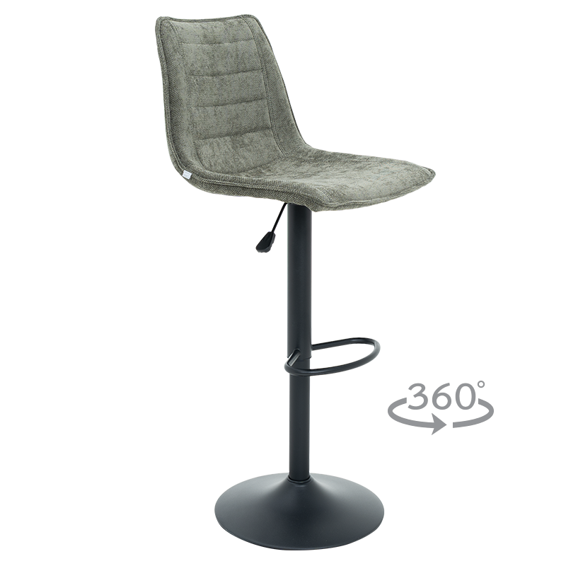 Бар стол MAVIS впечатлява с изчистен силует и модерно излъчване, което лесно се вписва в съвременни кухни, бар зони или заведения. Седалката е тапицирана с приятна на допир дамаска и предлага комфорт при продължително използване. Моделът разполага с функция за въртене на 360° и регулируема височина, а стабилната основа от прахово боядисан метал и удобната поставка за крака допълват усещането за практичност и стил. Пълна информация за размерите и характеристиките на модела ще намерите в таблицата в таб/поле „Техническа информация“.
