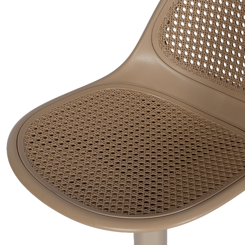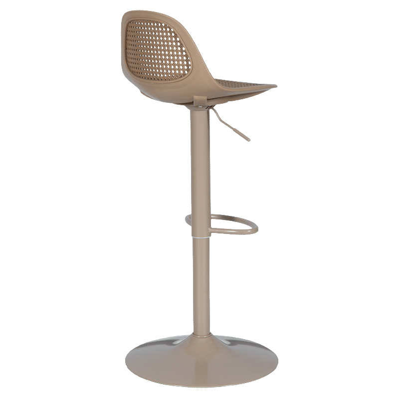 Бар стол NARBONA съчетава модерен силует с отличителен дизайн, подчертан от стилната перфорация на облегалката, която придава лекота и визуална елегантност. Седалката от полипропилен осигурява комфорт и лесна поддръжка, а стабилната основа с праховобоядисано покритие гарантира надеждност. Моделът разполага с газов амортисьор за плавно регулиране на височината, въртене на 360 градуса и удобна поставка за крака. Пълна информация за размерите и характеристиките на модела ще намерите в таблицата в таб/поле "Техническа информация".