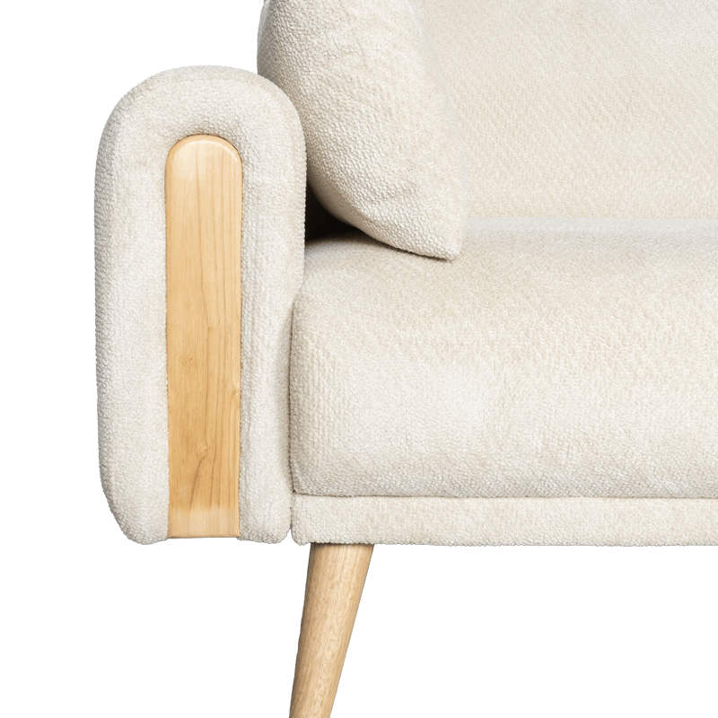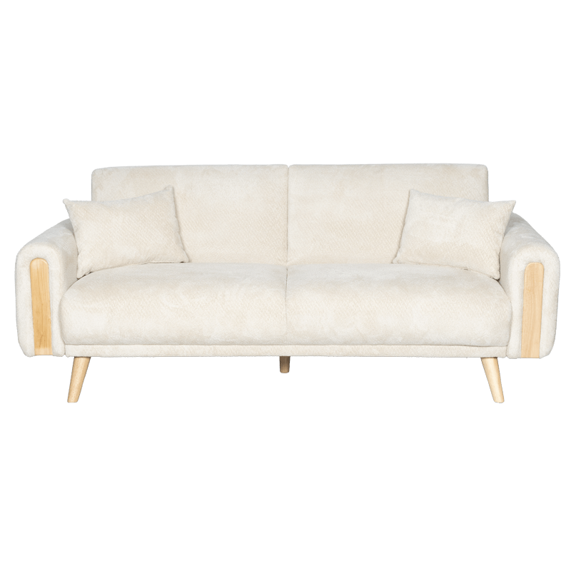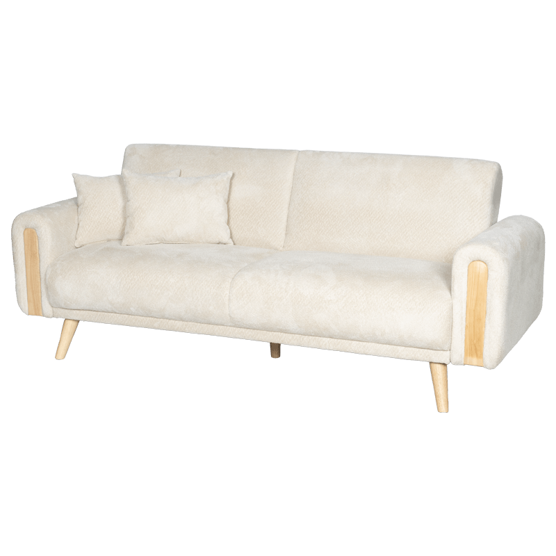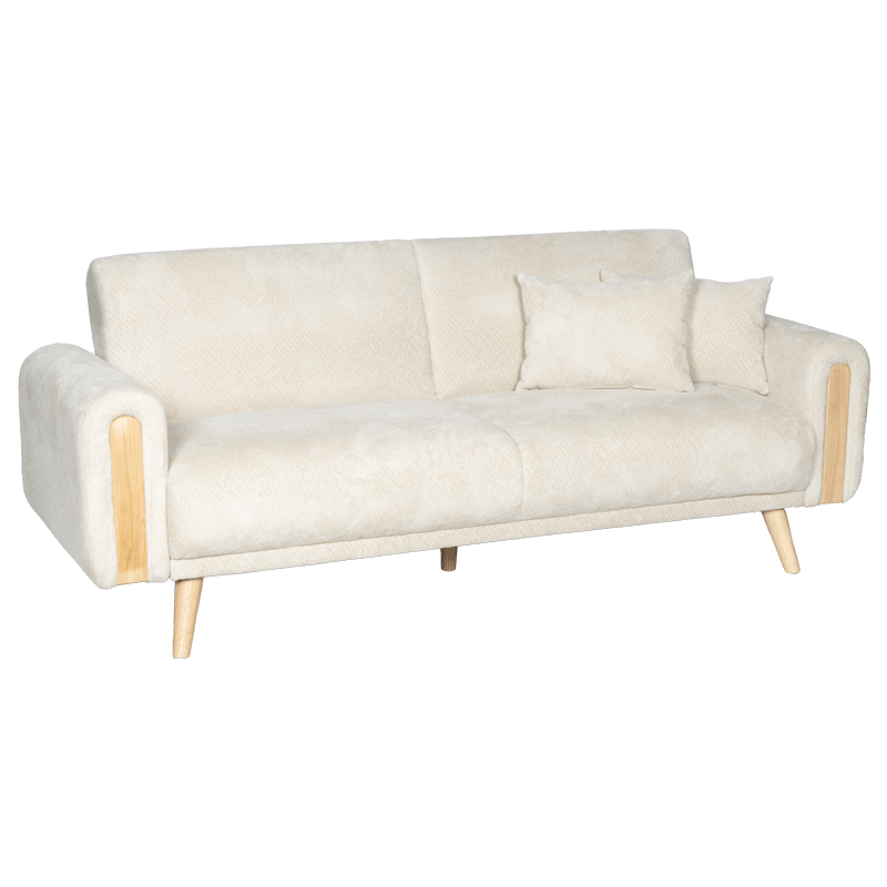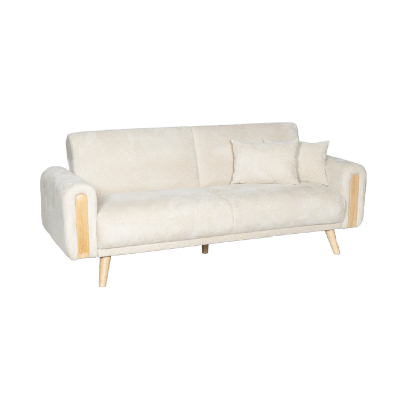 Диван GOMA впечатлява със своя балансиран дизайн, който съчетава модерна линия с топлината на естествените материали. Дървените крака и декоративните елементи в подлакътниците внасят усещане за уют и домашна хармония, превръщайки го в естествен акцент в интериора. Конструкцията от дърво и метал гарантира стабилност и дълготрайност, а висококачествената дамаска, съчетана с пълнеж от пенополиуретан и покет пружини, осигурява изключителен комфорт при седене и сън. Механизмът за разтягане тип клик‑клак трансформира дивана в удобно легло с площ 113 × 179 см. Включени са две декоративни възглавници с калъфи с цип за лесно сваляне и поддръжка. Пълна информация за размерите и характеристиките на модела ще намерите в таб “Техническа информация”.