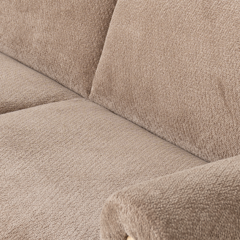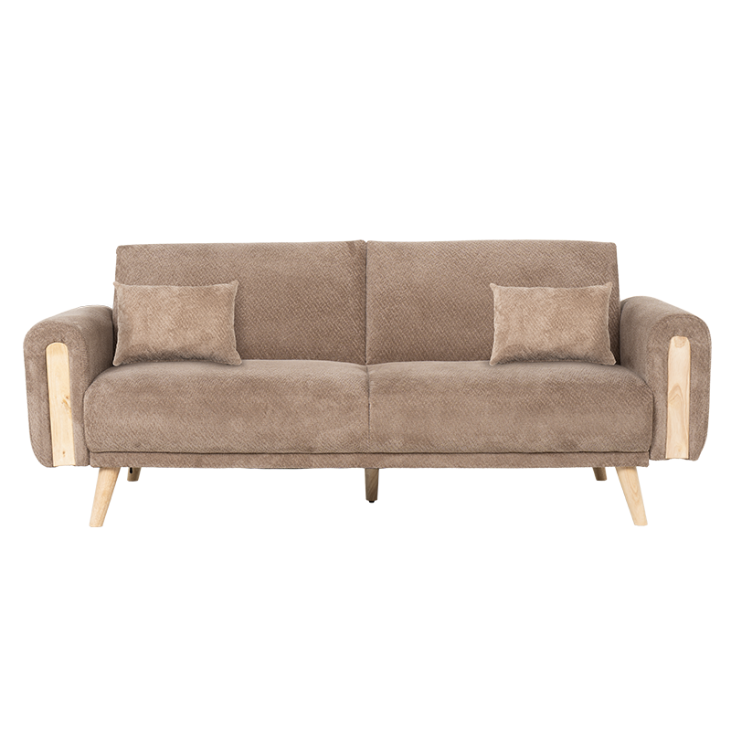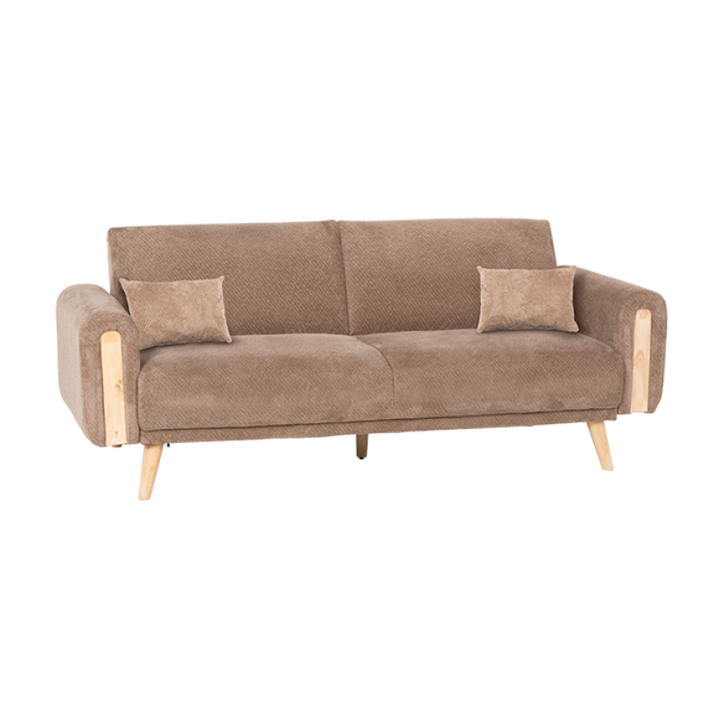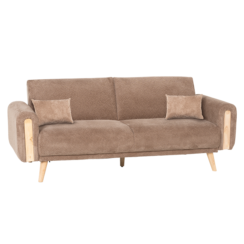 Диван GOMA впечатлява със своя балансиран дизайн, който съчетава модерна линия с топлината на естествените материали. Дървените крака и декоративните елементи в подлакътниците внасят усещане за уют и домашна хармония, превръщайки го в естествен акцент в интериора. Конструкцията от дърво и метал гарантира стабилност и дълготрайност, а висококачествената дамаска, съчетана с пълнеж от пенополиуретан и покет пружини, осигурява изключителен комфорт при седене и сън. Механизмът за разтягане тип клик‑клак трансформира дивана в удобно легло с площ 113 × 179 см. Включени са две декоративни възглавници с калъфи с цип за лесно сваляне и поддръжка. Пълна информация за размерите и характеристиките на модела ще намерите в таб “Техническа информация”.