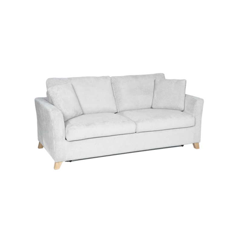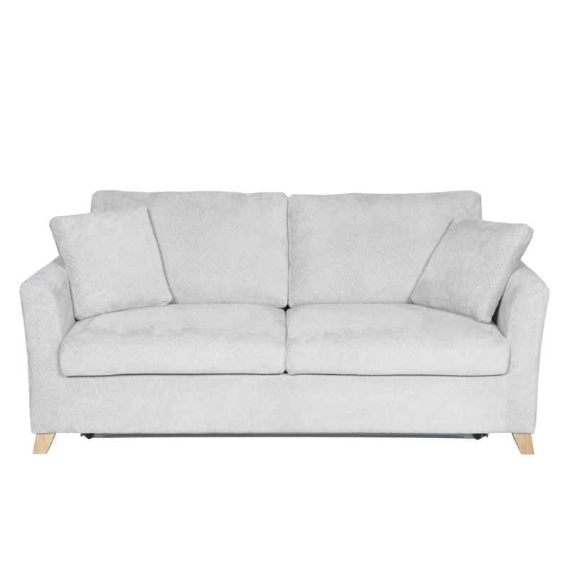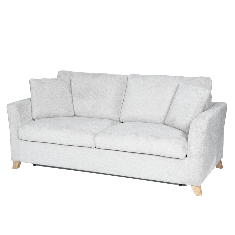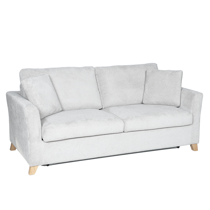 Разтегателен диван-тройка FIZI е създаден за любителите на комфорта и изчистения стил. Моделът предлага удобна седалищна част с пълнеж от полиуретан и покет пружини, които осигуряват отлична опора и мекота. Конструкцията е изработена от дърво и метал за стабилност и дълъг живот, а тапицерията от висококачествена дамаска придава уютен и елегантен вид. Диванът разполага с функция сън, която се разгъва лесно и създава комфортна площ за почивка. Дървените крака добавят топлина към дизайна, а две декоративни възглавници допълват усещането за стил и завършеност. Пълна информация за размерите и характеристиките на модела ще намерите в таблицата в таб/поле 'Техническа информация'.