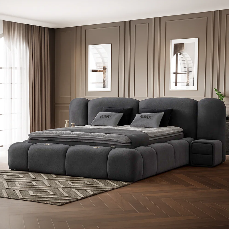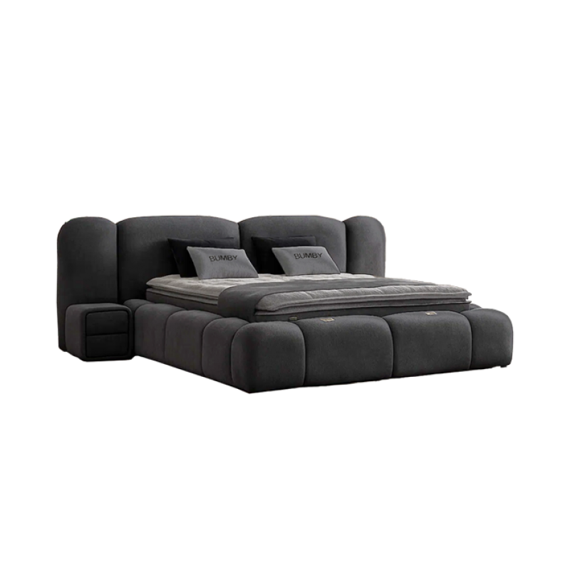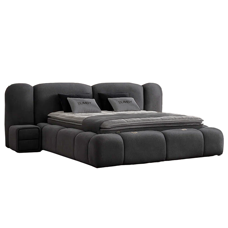 Спалнята BUMBY е елегантно и функционално решение, което внася модерен стил и усещане за чистота в интериора. Моделът е изработен със стабилна метална конструкция, съчетана с МДФ и ПДЧ, като цялата повърхност е тапицирана с качествена дамаска в класическо бяло. В комплекта е включен умерено твърд матрак с покет пружини, допълнен от пухена подложка и вложки от вълна и памук за оптимален комфорт. Подсилената метална подматрачна рамка позволява лесен достъп до практична ракла за съхранение на багаж, оптимизирайки пространството в помещението. Пълна информация за размерите и характеристиките на модела ще намерите в таб/поле "Техническа информация".