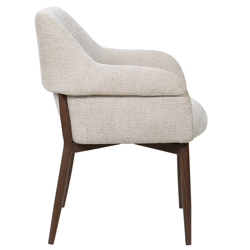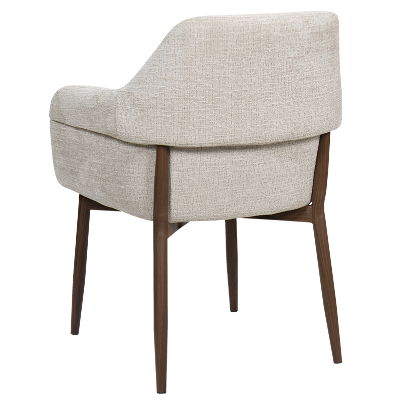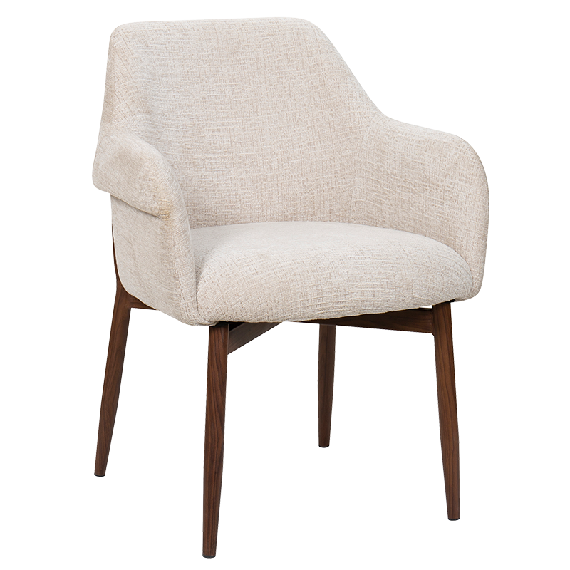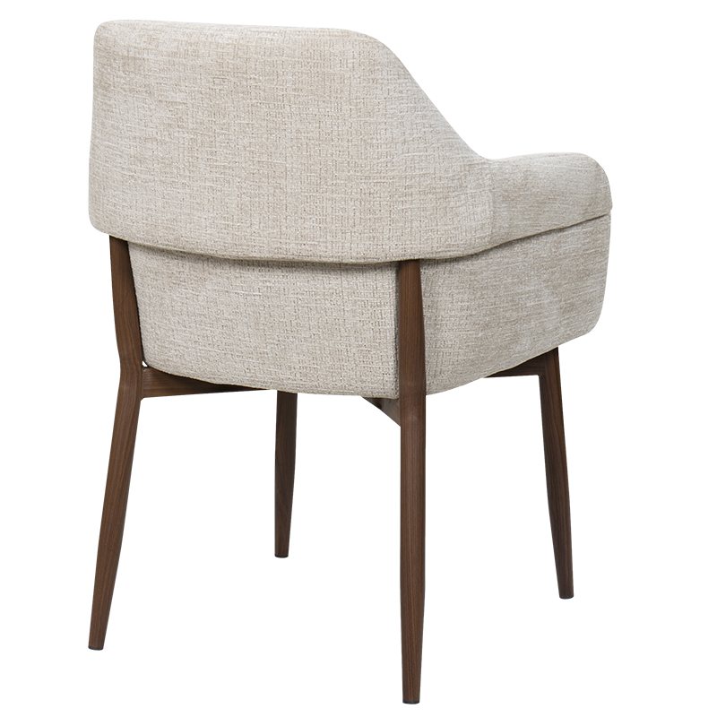 Трапезен стол BOLO съчетава удобство и стил с модерната си форма и подлакътници. Моделът е тапициран с мека дамаска, която придава уютен вид, а основата от праховобоядисан метал с дървесен ефект допълва дизайна със стабилност и елегантност. Столът е подходящ както за трапезария, така и за всекидневна зона за релакс. Пълна информация за размерите и характеристиките на модела ще намерите в таблицата в таб/поле "Техническа информация".