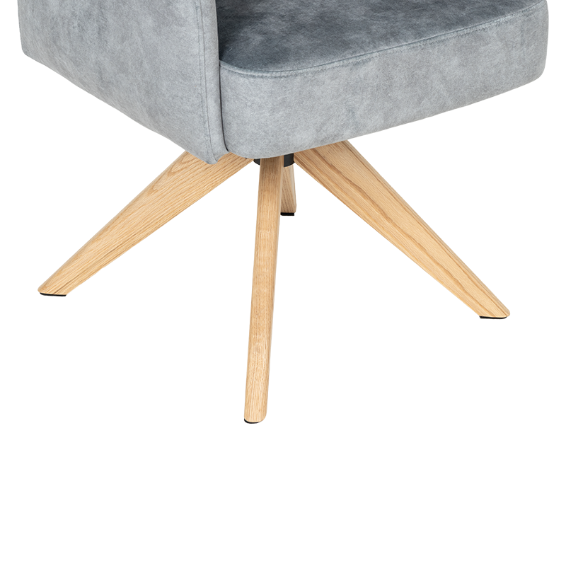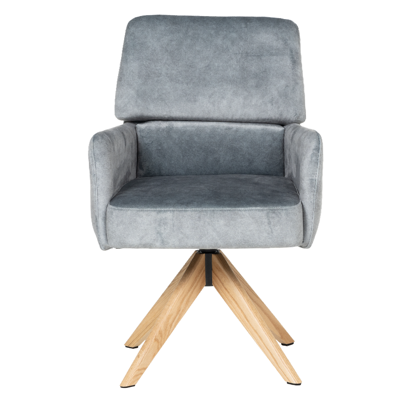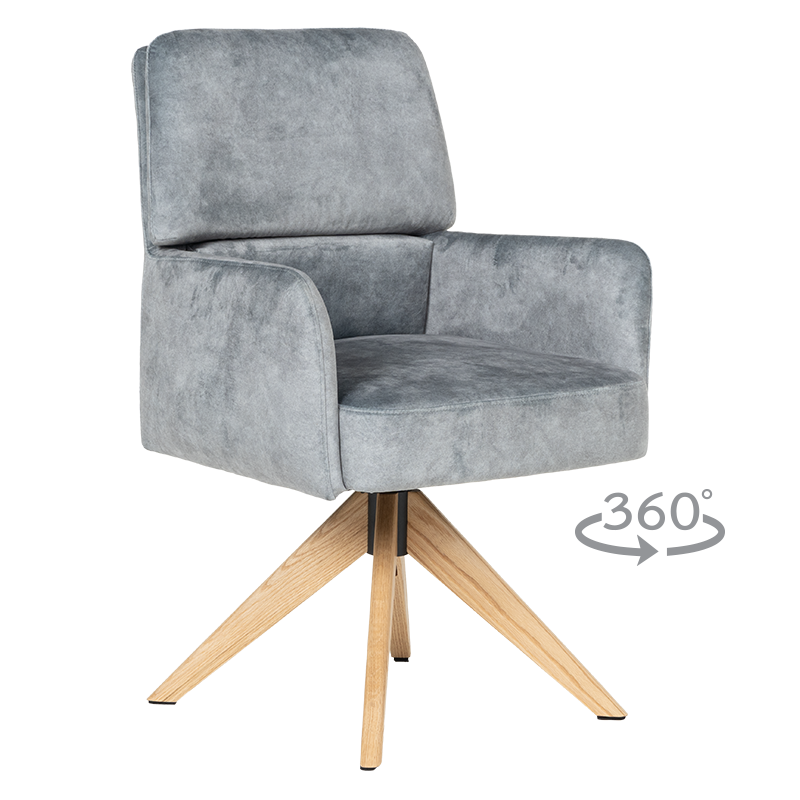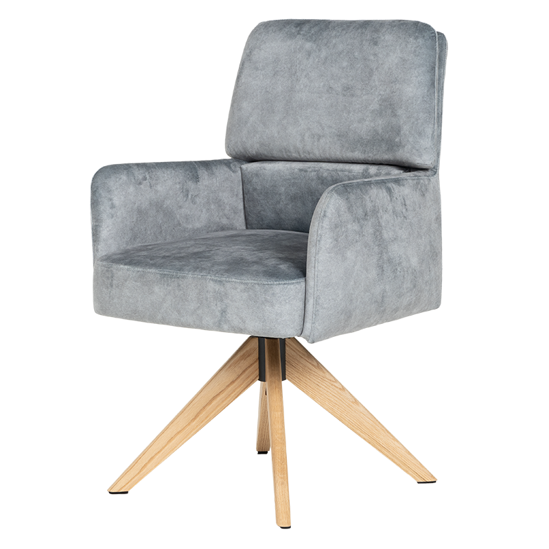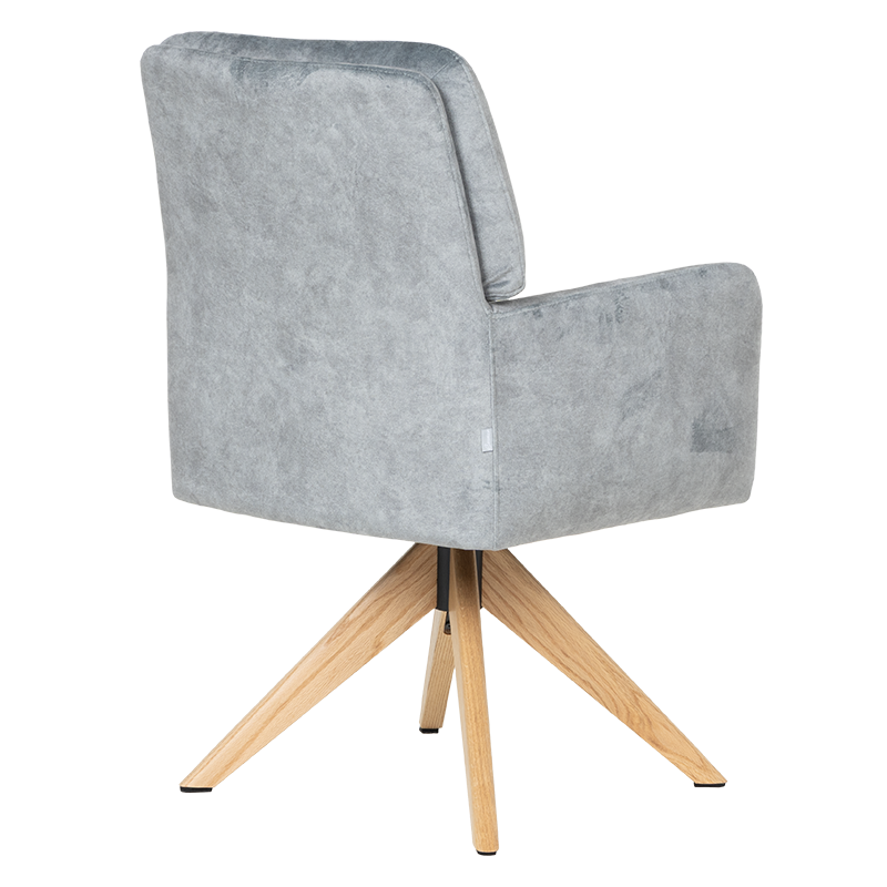 Трапезният стол Narva W впечатлява с изискан модерен облик и отлично ниво на комфорт. Седалката е тапицирана с висококачествена дамаска и разполага с вградени покет пружини, които осигуряват мекота и стабилна опора при седене. Подлакътниците допринасят за уют и удобство, докато функцията за 360° завъртане с автоматично връщане добавя практичност при използване в ежедневна обстановка. Фините дървени крака от висококачествен Червен дъб придават лек и елегантен акцент, а люлеещият механизъм е стилна и неочаквана екстра, която подсилва усещането за релакс. Максималната товароносимост от 120 кг гарантира здравина и надеждност, което прави Narva 5 отличен избор за модерна трапезария, където комфортът е на първо място.Пълна информация за размерите и характеристиките на модела ще намерите в таблицата в таб/поле "Техническа информация".