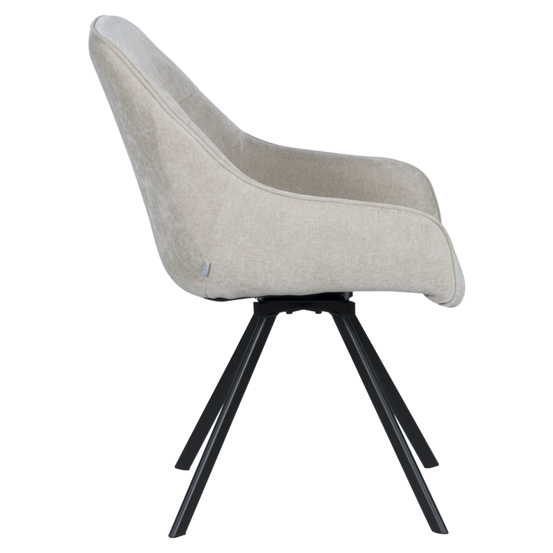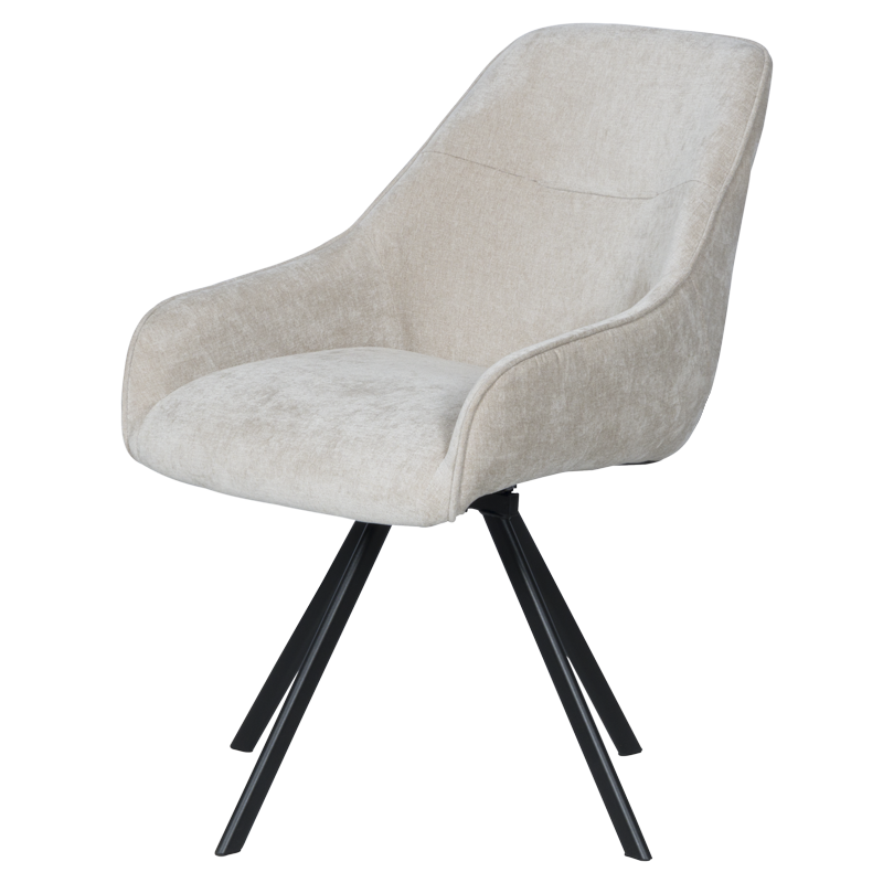 Трапезен стол MARSALA – бежов съчетава елегантност и комфорт с модерни функционалности. Тапициран е с мека дамаска, а краката са от прахово боядисан метал. Столът разполага с подлакътници и функция за въртене на 360°, което добавя допълнително удобство при сядане. Максималното натоварване е до 120 кг, което прави стол MARSALA здрав и надежден избор за трапезарията. Пълна информация за размерите и характеристиките на модела ще намерите в таблицата в таб/поле „Техническа информация“.