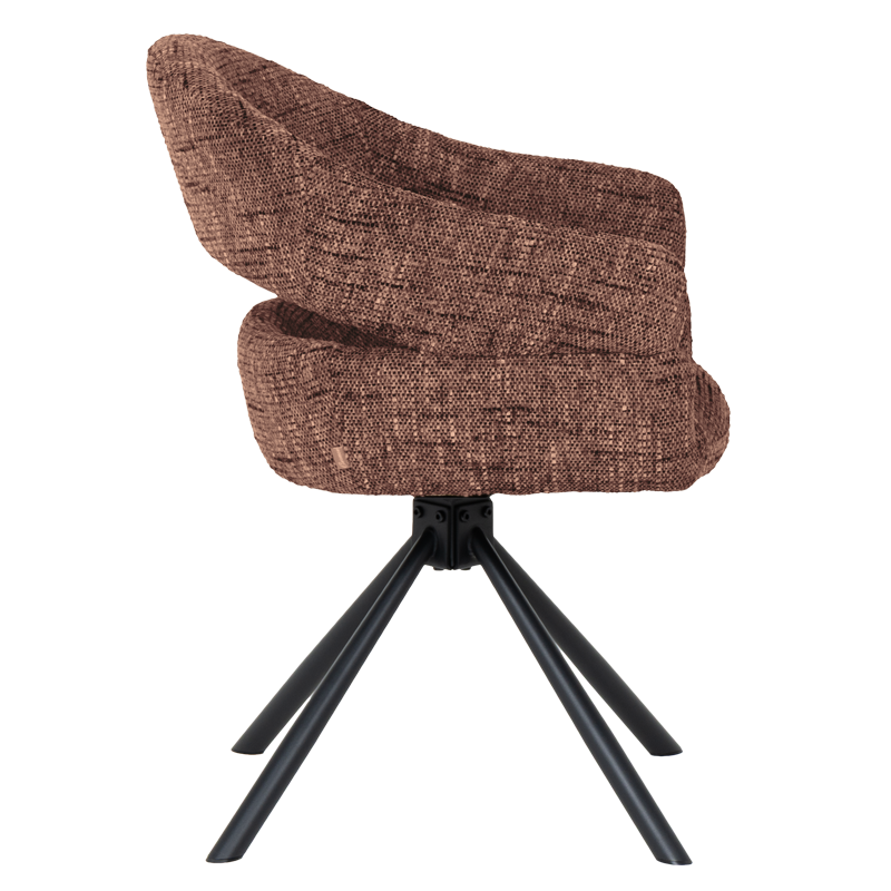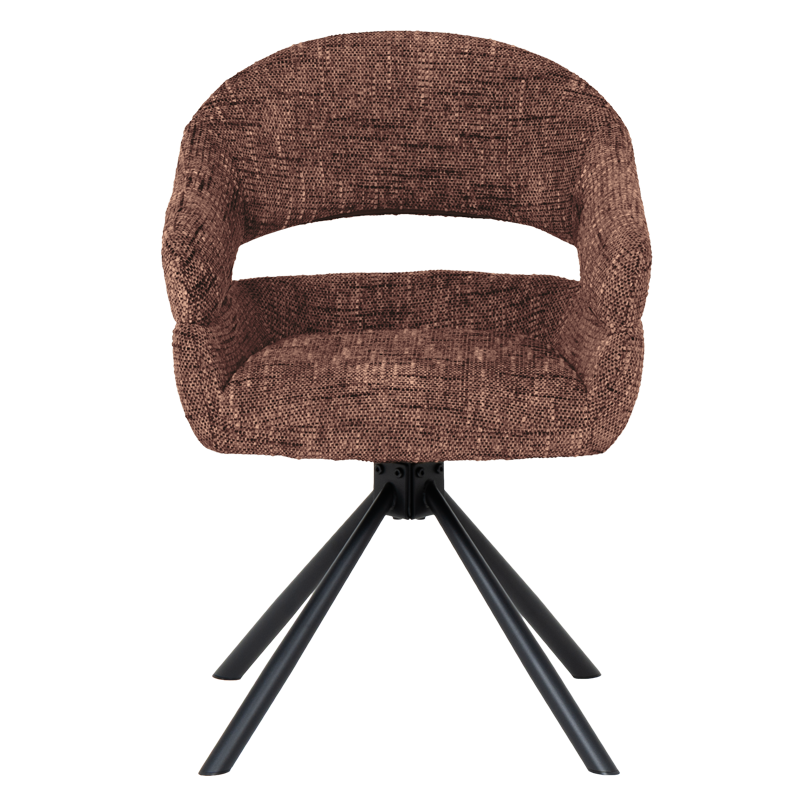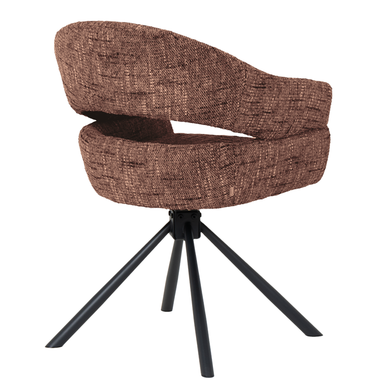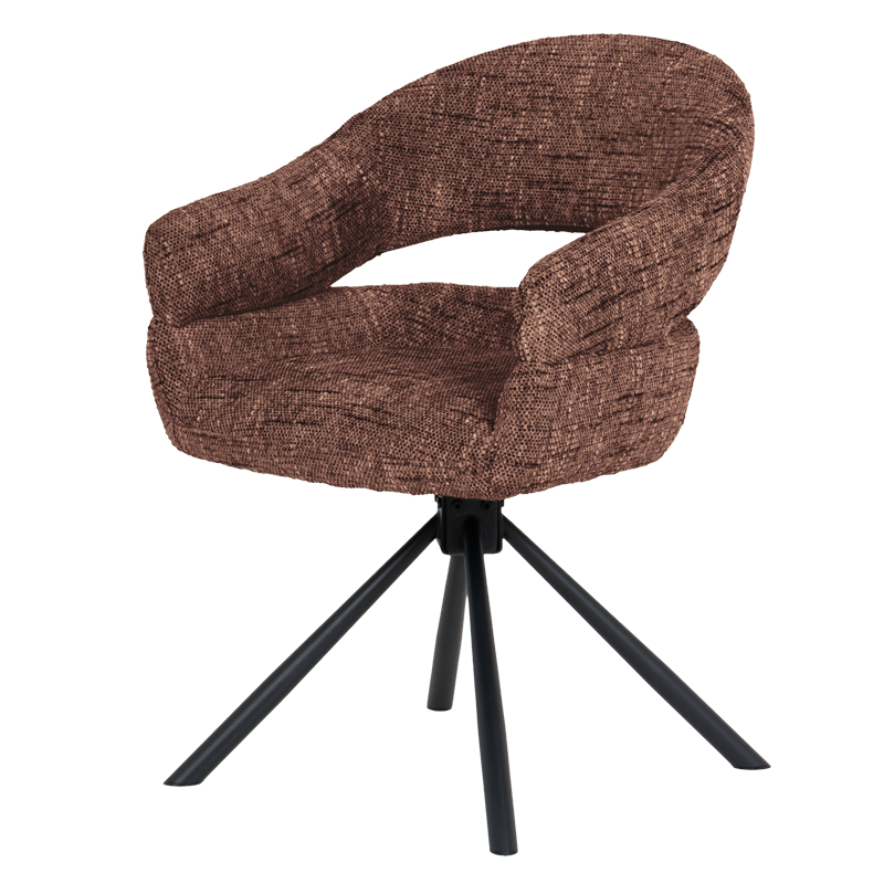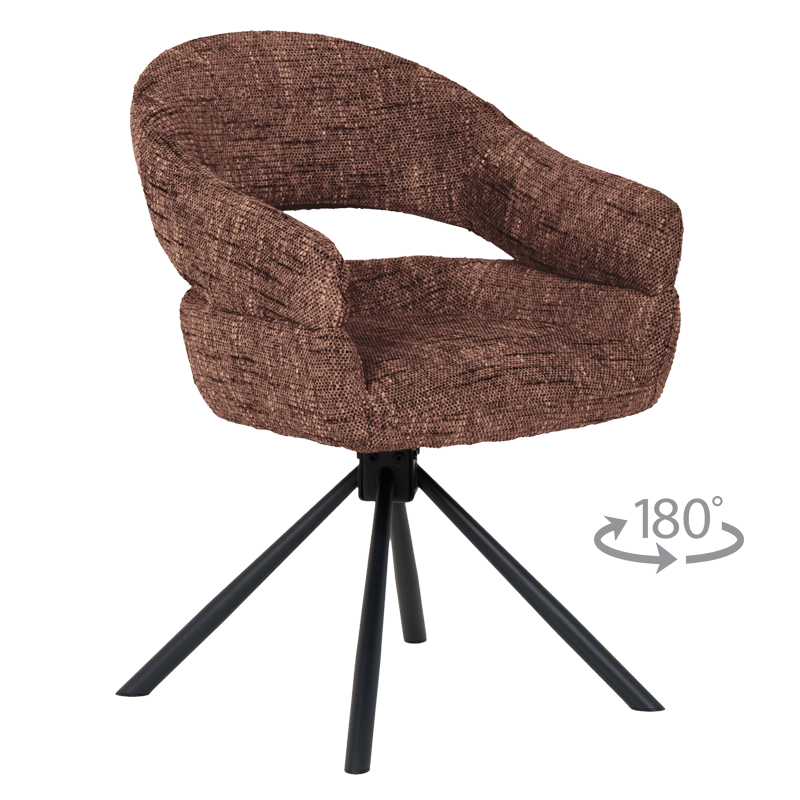 Трапезен стол SACABA впечатлява с елегантната си обгръщаща форма и изключителен комфорт, който превръща всяко сядане в удоволствие. Меката дамаска и седалката с покет пружини осигуряват отлична опора, а фината люлееща функция създава допълнително усещане за релакс. Въртенето на 180° с автоматично връщане в изходна позиция добавя практичност и лекота в ежедневието, а стабилните крака от праховобоядисан метал завършват модерната визия с надеждност и стил. Пълна информация за размерите и характеристиките на модела ще намерите в таблицата в таб/поле "Техническа информация".