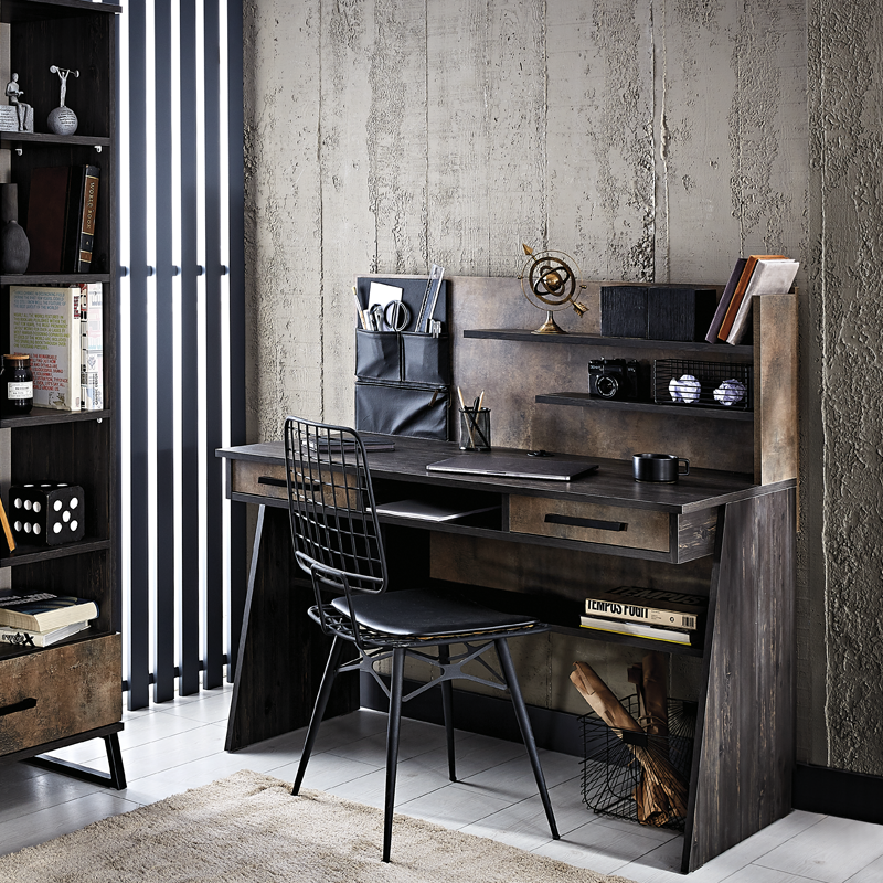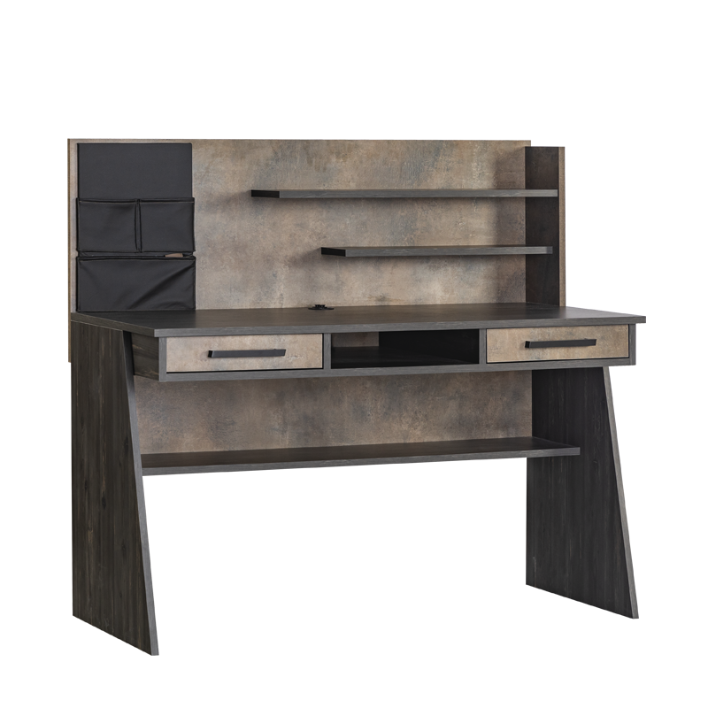 Детското бюро COSMOS съчетава функционалност и модерен дизайн, създаден да улесни ежедневните занимания. Изработено от ПДЧ с дебелина 18 мм, моделът разполага с три рафта, стилен кожен органайзер и практични отделения за съхранение на учебни материали и аксесоари. Вграден USB порт осигурява удобство при работа с мобилни устройства, а чекмеджетата с плавно затваряне и метални дръжки гарантират комфорт при употреба. Конструкцията позволява лесно почистване, включително използване на прахосмукачка робот. Пълна информация за размерите и характеристиките на модела ще намерите в таблицата в таб/поле „Техническа информация“.