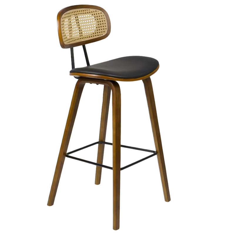 Бар стол Carmen 4029 съчетава елегантност и естествен чар в модерен ретро стил. Седалката е изработена от еко кожа и дърво, осигуряваща комфорт и издръжливост при ежедневно ползване. Краката са дървени, стабилни и стилно извити, а степенката от праховобоядисан метал допринася за удобството при седене. Облегалката е изработена от дърво и изкуствен ратан, придавайки лек и изискан акцент на дизайна. Пълна информация за размерите и характеристиките на модела ще намерите в таблицата в таб/поле 'Техническа информация'.