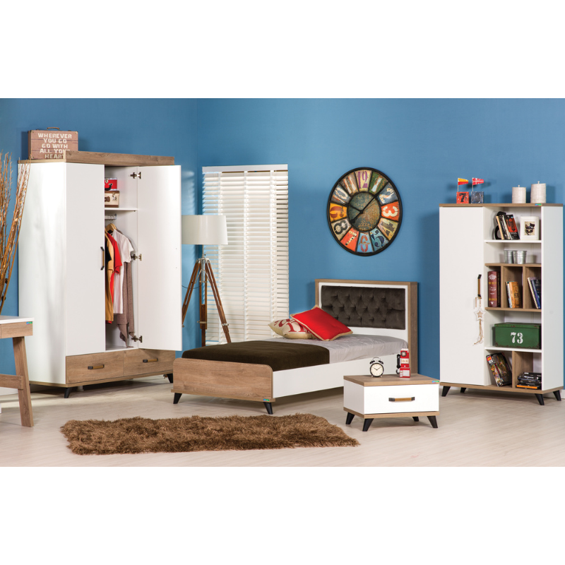 Етажерка за книги NATURA е практична и стилна мебел, която осигурява достатъчно място за съхранение не само на книги, но и на учебници и други лични вещи. Освен това има страхотна визия със своя просторен шкаф и 5-те октрити отделения. За максимално удобство вратичката на етажерката разполага и с механизъм за плавно затваряне.