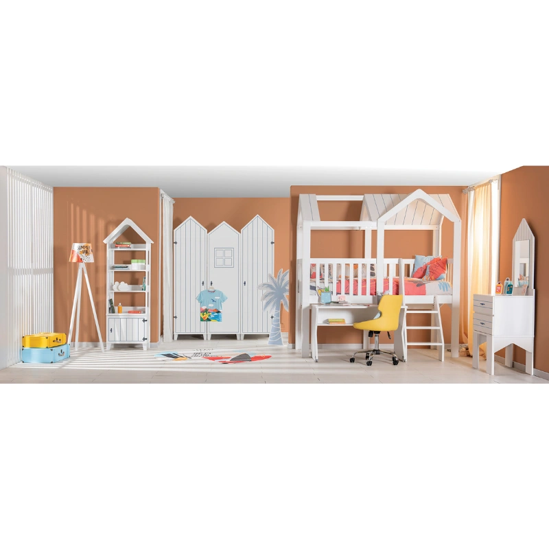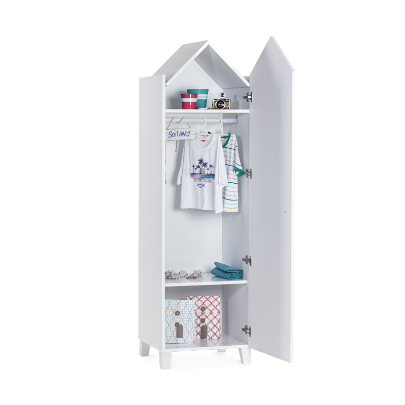 Еднокрилният гардероб MIAMI съчетава функционалност и модерен дизайн. Изработен от ПДЧ с дебелина 18 мм, моделът разполага с врата с панти с плавно затваряне за безшумна и безопасна употреба. Оборудван е с два просторни рафта и един лост за закачалки, които осигуряват удобство при организирането на дрехи и аксесоари. Допълнителното предимство е вграденото LED осветление със сензор за движение, което улеснява достъпа и добавя комфорт при ежедневна употреба. Благодарение на 10-сантиметровите ABS крачета, почистването с прахосмукачка робот е лесно и безпроблемно. Пълна информация за размерите и характеристиките на модела ще намерите в таблицата в таб/поле "Техническа информация".