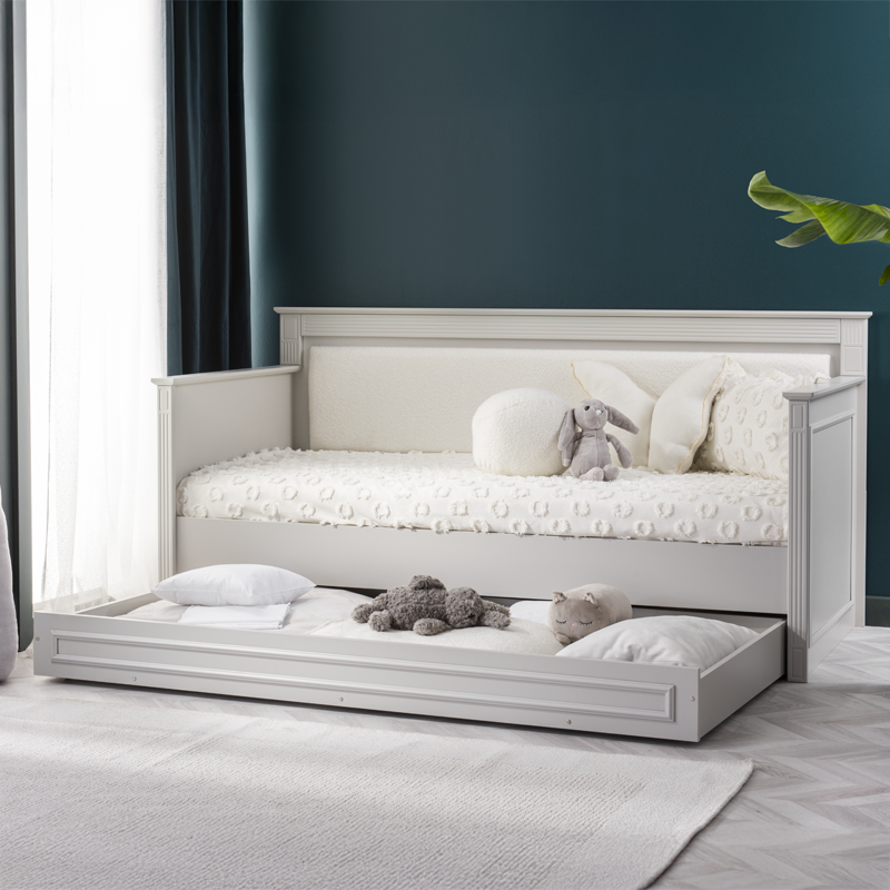 Чекмеджето за легло EFFIE 90 x 200 е практично допълнение с голям обем, подходящо както за съхранение, така и като помощно легло. Конструкцията е стабилна, с колелца за лесно отваряне и товароносимост до 130 кг. Изработено е от висококачествено ПДЧ с ниско съдържание на формалдехид. Пълна информация за размерите и характеристиките на модела ще намерите в таблицата в таб/поле 'Техническа информация'.