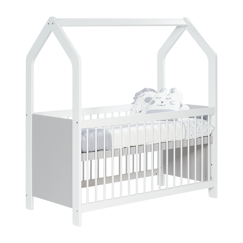 Регулируема бебешка кошара WHITE HOUSE 70 x 140 см съчетава стил, безопасност и функционалност в едно. Със своя изчистен дизайн във формата на къщичка и стабилна конструкция, тя създава уютна и сигурна среда за сън и игра през първите години на детето. Кошарата разполага с регулируема височина на матрака, което я прави удобна за различните етапи на развитие. При нужда, част от решетката може да се демонтира или премахне изцяло, за да позволи на порасналото дете да влиза и излиза самостоятелно. Използваните материали са подходящи за детска среда, а крачетата позволяват лесно почистване с робот прахосмукачка. Конструкцията издържа натоварване до 50 кг. Пълна информация за размерите и характеристиките на модела ще намерите в таблицата в таб/поле 'Техническа информация'.