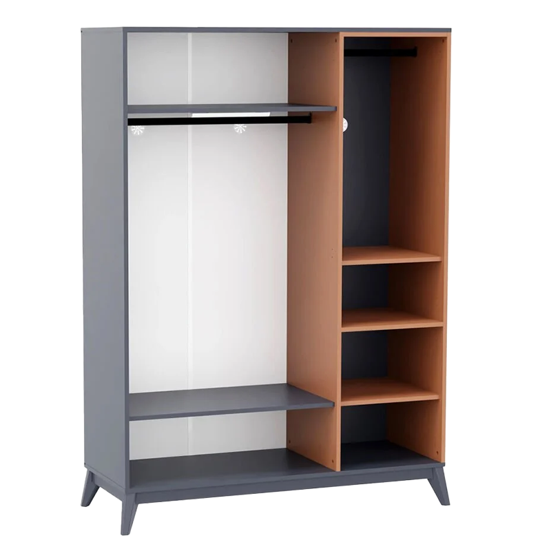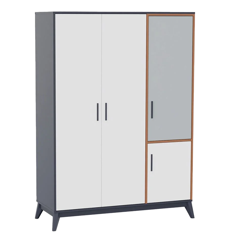 Трикрилен гардероб BREDA предлага просторна зона за закачалки, оборудвана с вградено осветление за удобство при ежедневна употреба. Вратите са снабдени с механизъм с плавно затваряне, който гарантира тиха и безопасна експлоатация. Рафтовете издържат натоварване до 25 кг и могат лесно да се свалят или пренареждат според нуждите. ABS дръжките осигуряват дълготрайна и хигиенична употреба, а допълнителният централен крак придава стабилност и предотвратява огъването на конструкцията. Изработен е от висококачествени 18 mm плоскости, а краката с височина 11 cm позволяват лесно почистване с робот прахосмукачка. Пълна информация за размерите и характеристиките на модела ще намерите в таблицата в таб/поле 'Техническа информация'.