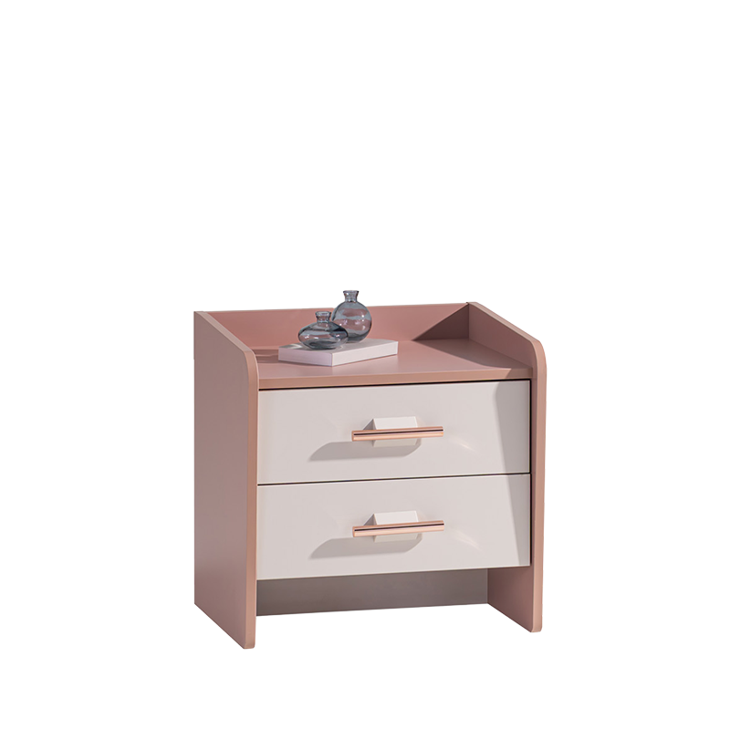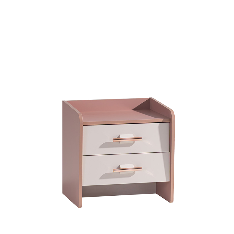 Нощното шкафче ESTELLA съчетава стил, функционалност и внимание към детайла – идеалното допълнение към всяка детска или тийнейджърска стая. Моделът разполага с просторни чекмеджета и широка горна повърхност, която осигурява удобно място за книга, очила или лампа до леглото. Изисканата визия е подчертано с розово-златист метален обков, а заоблените ръбове допринасят за още по-елегантна и безопасна визия на модела. Пълна информация за размерите и характеристиките на модела ще намерите в таблицата в таб/поле 'Техническа информация'.