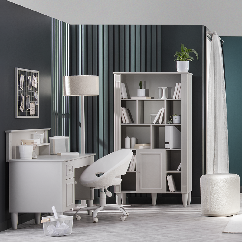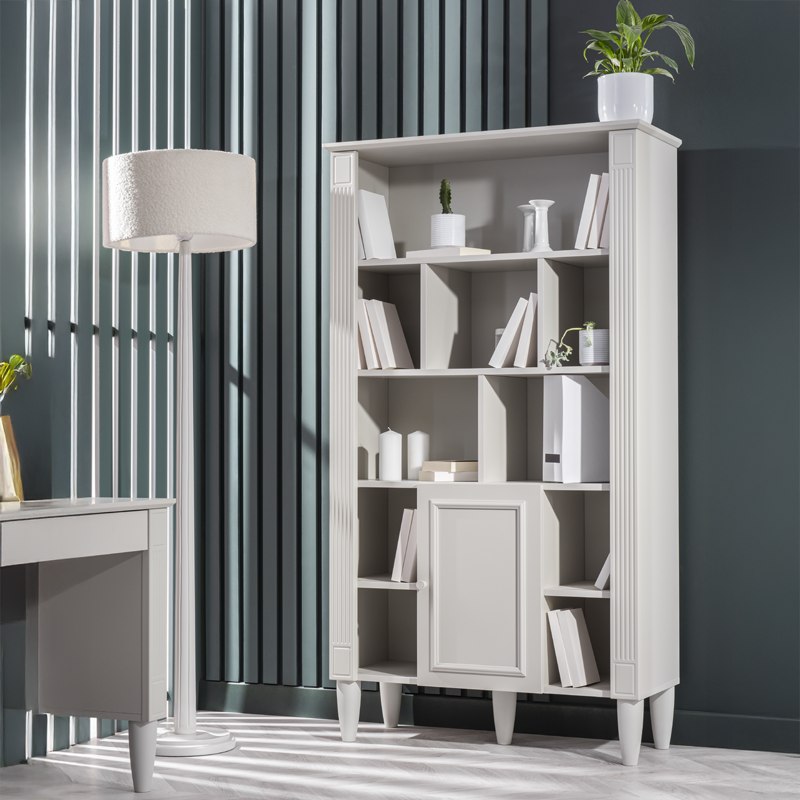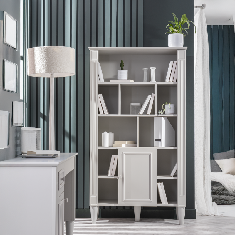 Етажерка EFFIE предлага елегантно решение за организация на книги и декорация, съчетаващо класически дизайн с висока функционалност. Моделът разполага с отворени пространства и затворен шкаф със система за плавно затваряне, която осигурява тиха и безопасна употреба. Изработена от първокачествени материали, тя гарантира здравина и дълготрайност, превръщайки се в стилен акцент в интериора. Пълна информация за размерите и характеристиките на модела ще намерите в таб/поле "Техническа информация".