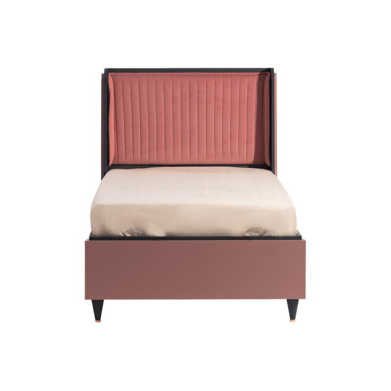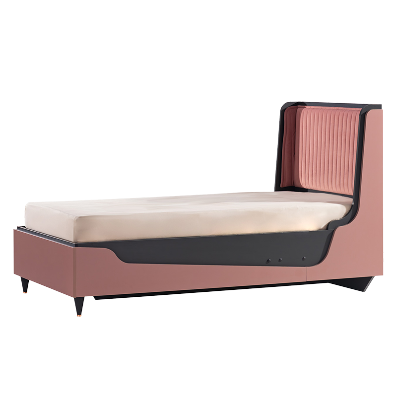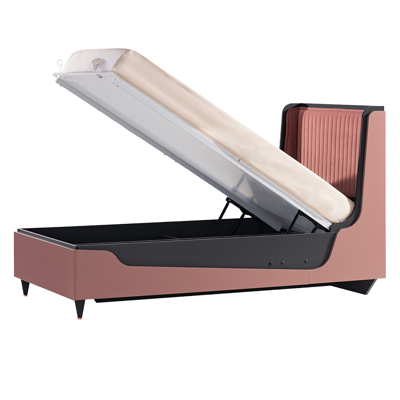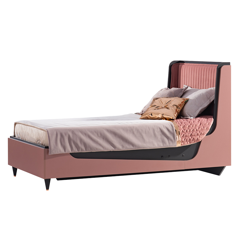 Детско легло с ракла VALENCIA 100 x 200 съчетава комфорт, елегантност и функционалност в дизайн, който превръща стаята в организирано и стилно пространство. Моделът се отличава с тапицирана табла с капитонирани детайли в цвят роза, която придава изтънчен акцент на интериора. Подматрачната ракла предлага обширно място за съхранение с вътрешни отделения, а амортисьорите с предпазни заключващи механизми гарантират сигурност при ежедневна употреба. Конструкцията с обли ъгли и крака с детайли в цвят розово злато завършват модерната визия на леглото. Пълна информация за размерите и характеристиките на модела ще намерите в таб/поле "Техническа информация".
