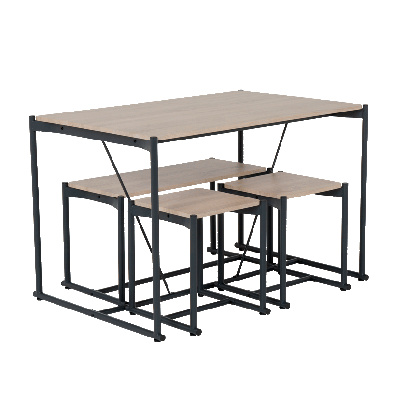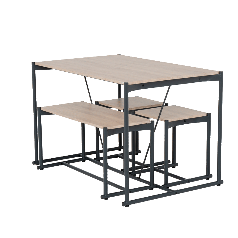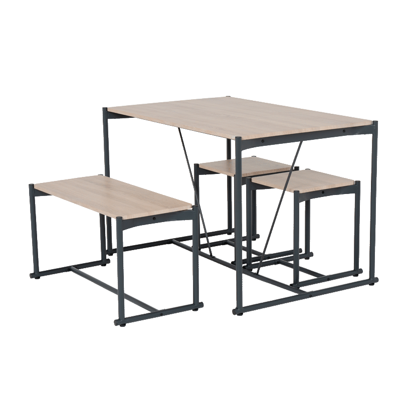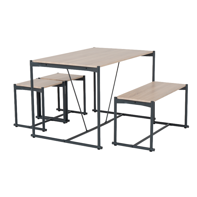 Комплектът Brevik предлага практично и стилно решение за всякатераса или кът за отдих на закрито, съчетавайки функционалност с модерен индустриален дизайн. Моделът включва компактна маса, удобна пейка и две табуретки, отличаващи се с плотове от MDF в цвят дъб сонома. Стабилните основи и крака са изработени от прахово боядисан метал, което гарантира устойчивост и дълготрайна употреба. Комбинацията от топли дървесни тонове и метална конструкция позволява на комплекта лесно да се впише във всяка среда, осигурявайки комфортно място за хранене и почивка. Пълна информация за размерите и характеристиките на модела ще намерите в таб/поле "Техническа информация".