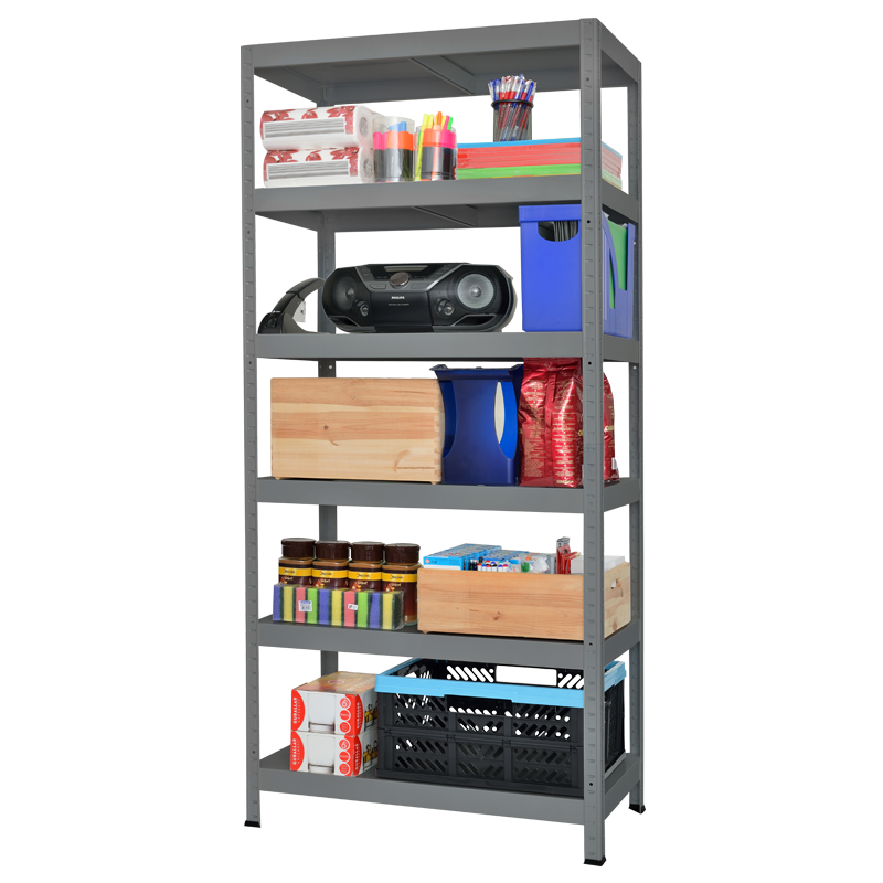 Металният стелаж HARD с размери 180x100x40 см разполага с 5 регулируеми по височина рафта, всеки от които може да понесе натоварване до 130 кг. Стелажът е с широко приложение за работното място или у дома и с лесен безболтов монтаж. Направен е от прахово боядисан метал без съдържание на вредни вещества за околната среда. Пълна информация за размерите и характеристиките на модела ще намерите в таблицата в таб/поле "Техническа информация".