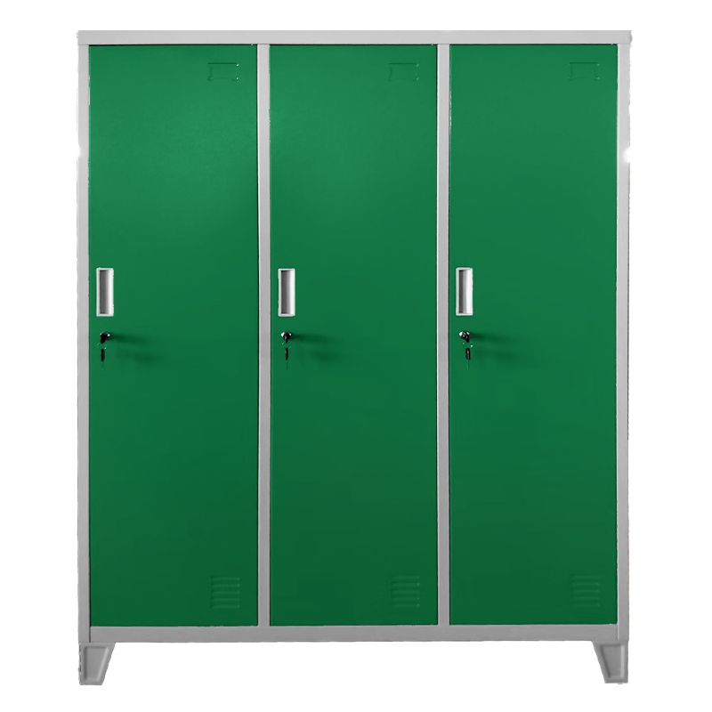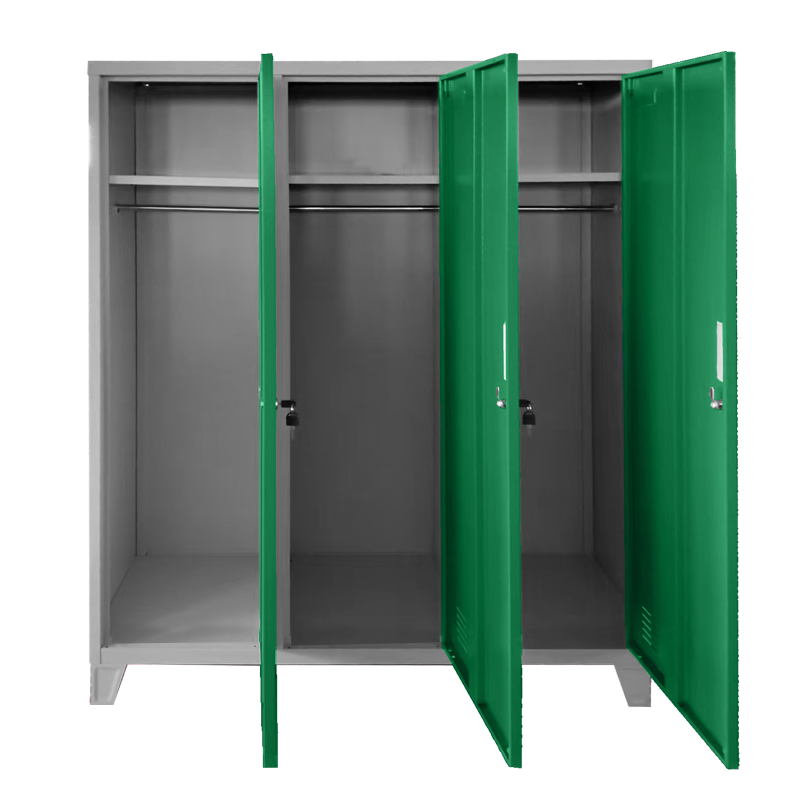 Метален шкаф Carmen CR-1604-3 JZ е практичен метален гардероб с три плътни врати, които се заключват с ключ. Всяко отделение е снабдено с рафт с товароносимост до 40 кг, вграден лост за закачалки и вентилационен отвор за по-добра циркулация на въздуха. Моделът е оборудван с крака с височина 10 см, които улесняват почистването под шкафа. Подходящ е за оборудване на детски градини. Пълна информация за размерите и характеристиките на модела ще намерите в таблицата в таб/поле 'Техническа информация'.