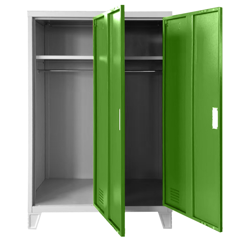 Метален шкаф Carmen CR-1605-2 JZ е двоен метален гардероб с две плътни врати, които се затварят с помощта на магнитна система. Всяко отделение разполага с рафт с товароносимост до 40 кг, вграден лост за закачалки и вентилационен отвор за добра циркулация на въздуха. Моделът е снабден с крака с височина 10 см, които улесняват почистването под шкафа. Изработен е от праховобоядисан метал с грапаво-шагрен покритие. Подходящ е за оборудване на детски градини. Пълна информация за размерите и характеристиките на модела ще намерите в таблицата в таб/поле 'Техническа информация'.