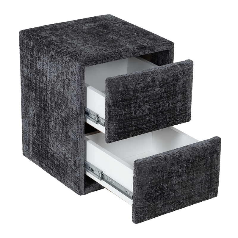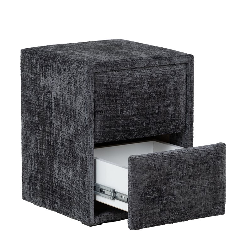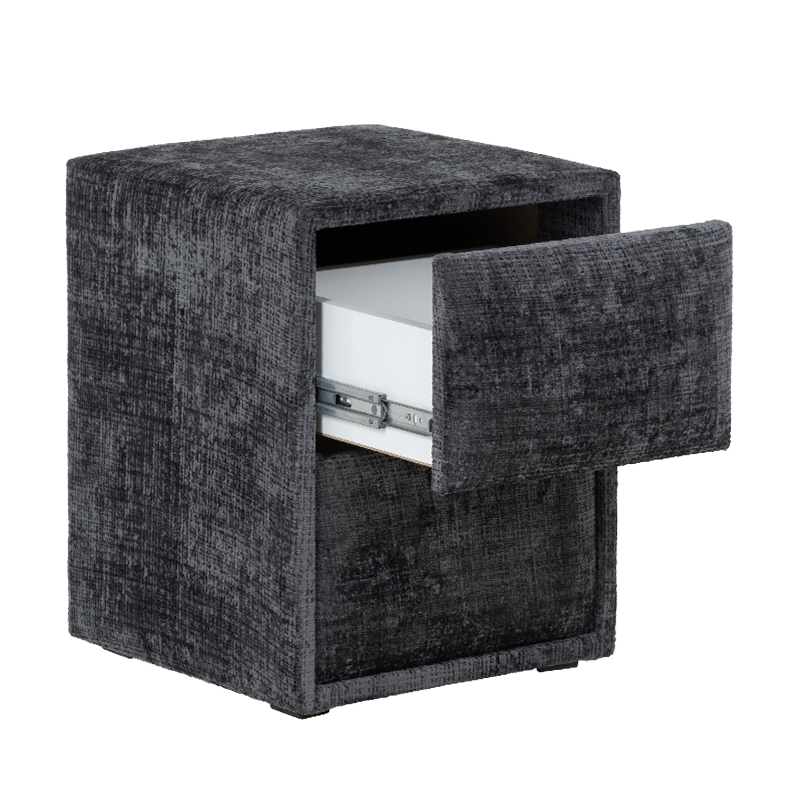 CANCUN е модерно нощно шкафче, което впечатлява със своята изчистена визия и практичен дизайн. Изработено от 18 мм ламинирано ПДЧ и тапицирано с висококачествена дамаска, моделът съчетава визуален комфорт и усещане за уют. Разполага с две чекмеджета с механизъм Push up, които се отварят с лек натиск, осигурявайки лесен достъп и минималистична визия без дръжки. Перфектен избор за модерни спални, в които стилът върви ръка за ръка с функционалността. Пълна информация за размерите и характеристиките на модела можете да намерите в таблицата в раздел „Техническа информация“.