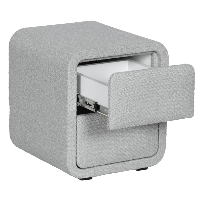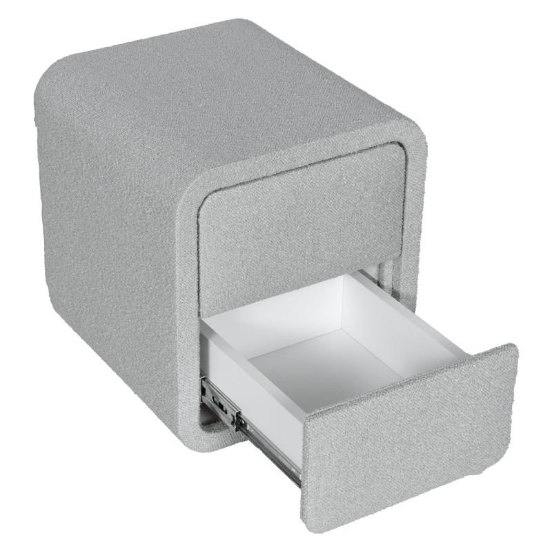 Нощното шкафче RODOS се отличава със заоблени форми и елегантен дизайн, облечено във висококачествена дамаска и изработено от ПДЧ. Двете чекмеджета с плавно затваряне добавят практичност, а модерната му визия е идеалният завършек към спалнята от серията. Пълна информация за размерите и характеристиките на модела ще намерите в таблицата в таб/поле 'Техническа информация'.