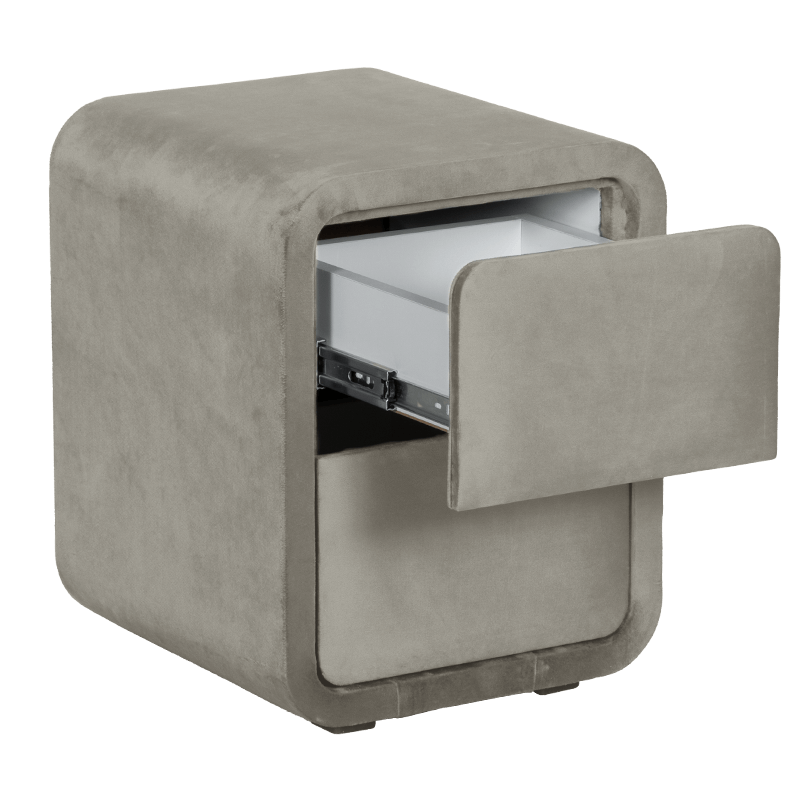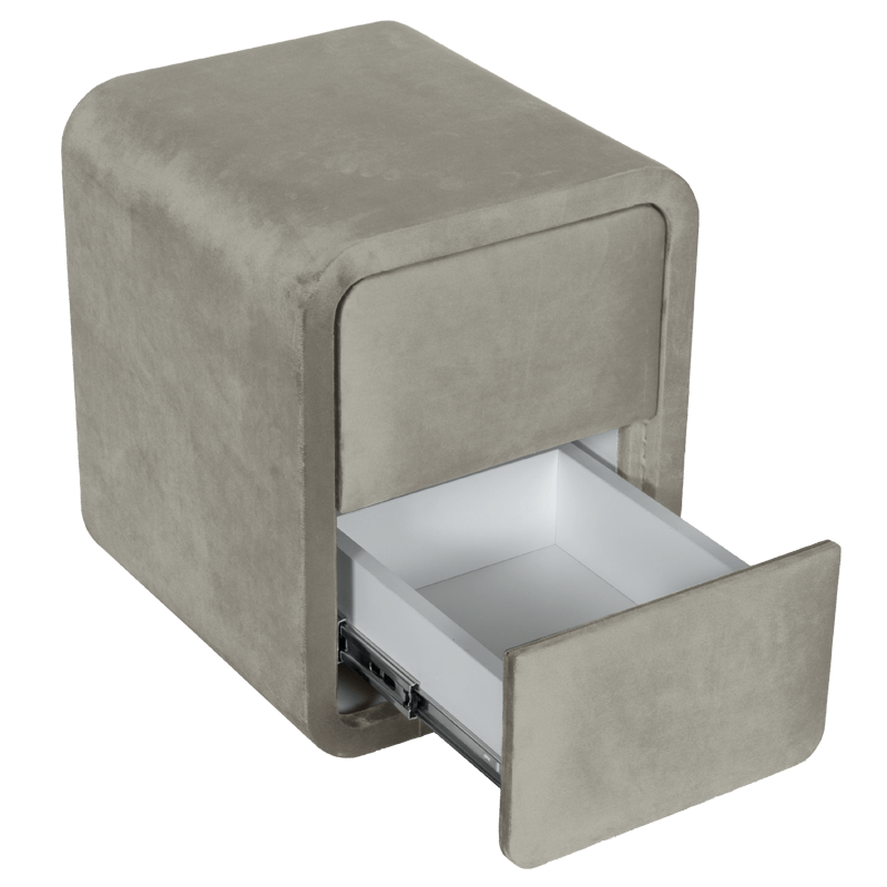Нощно шкафче FALLONE е елегантно и практично допълнение към всяка спалня. Изработено от качествена дамаска и корпус от ПДЧ, моделът комбинира топли цветове с функционалност. Разполага с две плавно затварящи се чекмеджета, които осигуряват удобно съхранение на вещи в близък достъп до леглото. Минималистичните крачета гарантират стабилност и лесна поддръжка, а компактните размери го правят подходящо както за просторни, така и за по-малки помещения. Пълна информация за размерите и характеристиките на модела ще намерите в таблицата в таб/поле "Техническа информация".