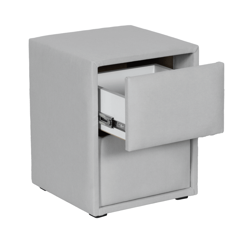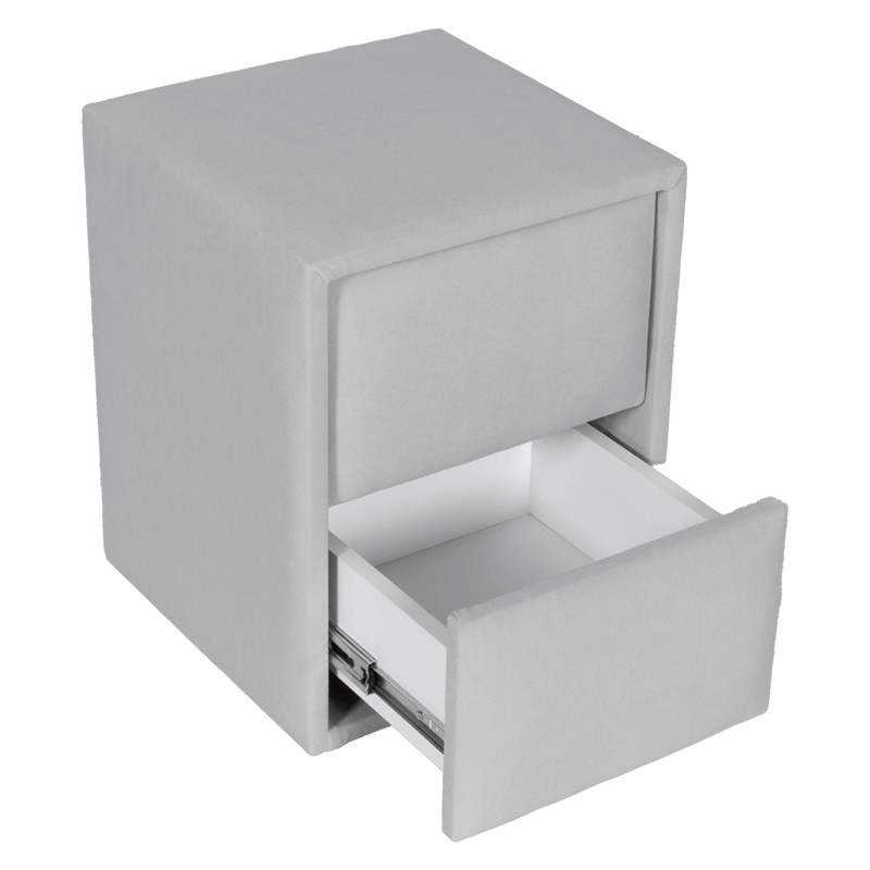 Нощно шкафче SIESTA – светлосив е стилен и практичен елемент за всяка модерна спалня. Обикновено тези модели са тапицирани с качествена дамаска и изработени от устойчив корпус, осигуряващ издръжливост и удобство в ежедневието. Оборудвано с едно или две чекмеджета с механизъм за плавно затваряне и удобни дръжки, шкафчето предлага функционално съхранение за лични вещи и аксесоари. Компактният му размер го прави идеален избор за поставяне до леглото.Пълна информация за размерите и характеристиките на модела ще намерите в таблицата в таб/поле "Техническа информация".