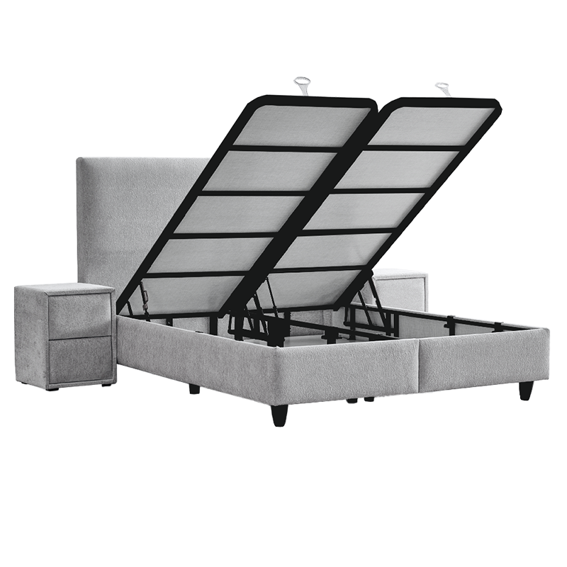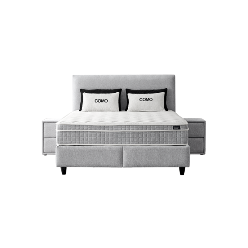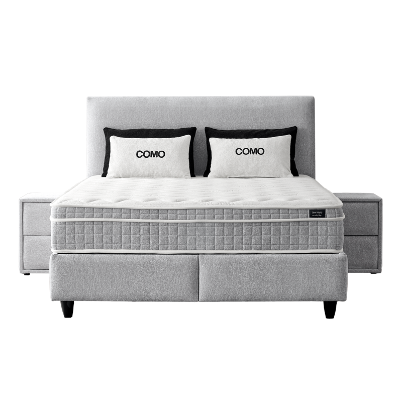 Тапицирана спалня с матрак COMO 180 x 200 впечатлява с изискан комфорт и модерна елегантност, съчетавайки функционалност и стил. Изчистената табла с геометричен дизайн и мека текстилна тапицерия придава съвременен характер и усещане за уют. Комплектът включва двулицев матрак с покет пружини, еластична пяна и пухена вложка, които осигуряват отлична опора и комфорт за пълноценен сън. Конструкцията на матрака е със средна твърдост и притежава ортопедични качества, подходящи за ежедневно ползване. Спалнята разполага с вградена ракла – практично решение за съхранение на спално бельо и други вещи, което поддържа реда в помещението. Пълна информация за размерите и характеристиките на модела ще намерите в таблицата в таб/поле 'Техническа информация'.
