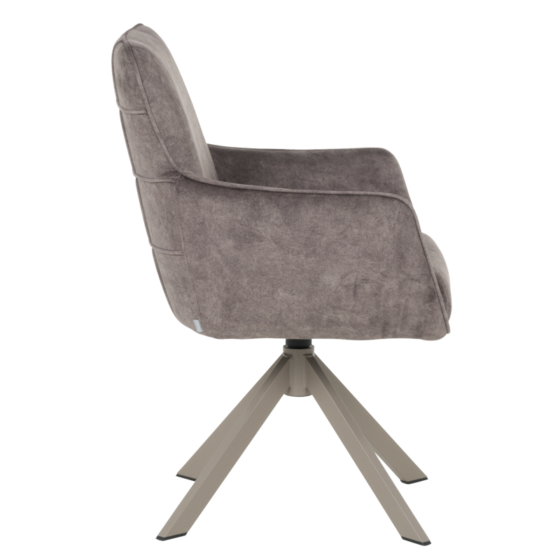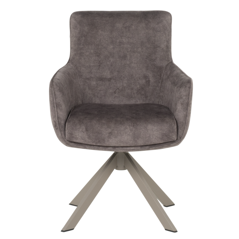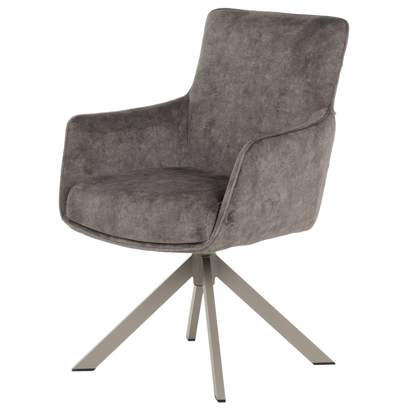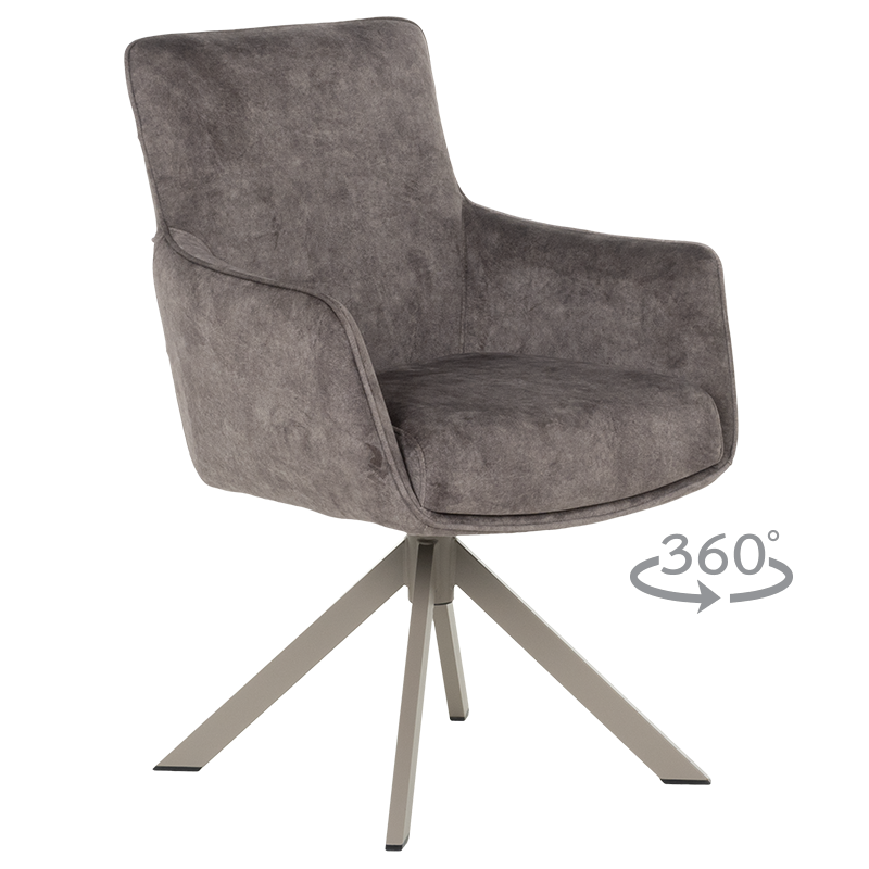 Трапезният стол VALGA впечатлява със своя съвременен дизайн и функционалност, създавайки идеалния баланс между стил и комфорт. Седалката е тапицирана с висококачествена дамаска и е оборудвана с покет пружини, които осигуряват удобство за продължителна употреба. Подлакътниците добавят допълнително усещане за уют, правейки стола подходящ както за хранене, така и за почивка. Уникалната функция за въртене на 360° с автоматично връщане в изходна позиция прави стола изключително практичен, а масивната основа от праховобоядисан метал с перлен блясък добавя нотка на елегантност. Люлеещият механизъм създава релаксиращо изживяване, което прави стол VALGA идеален избор за модерната трапезария. Пълна информация за размерите и характеристиките на модела ще намерите в таблицата в таб/поле "Техническа информация".